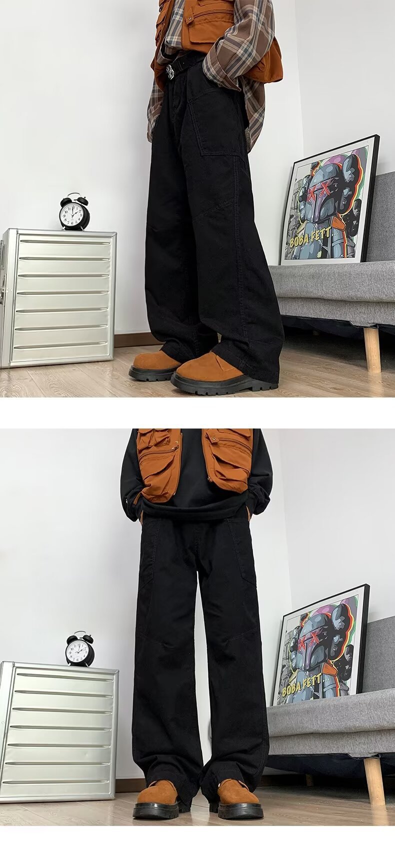 아메리칸 스트리트 세탁 오래 된 청바지 남성 봄과 가을 스트레이트 느슨한 유럽과 미국의 하이 스트리트 바이브 스타일 긴 바지