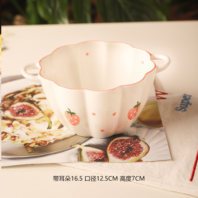 • 폴카 도트 딸기 호박 그릇과 스푼