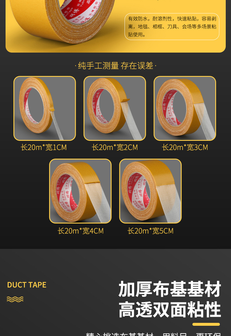 양면 덕트 접착 테이프 높은 점도 강한 고정 카펫 커플 특수 방수 바닥 가죽 양면 스티커