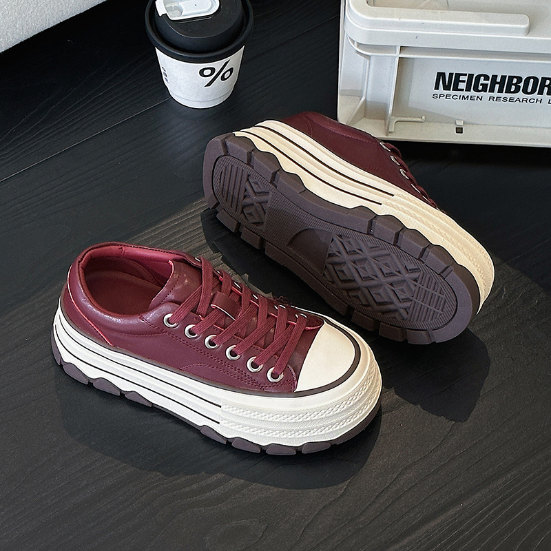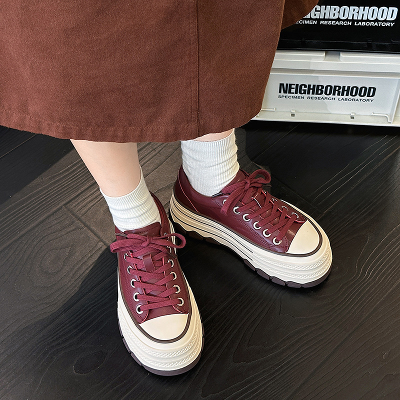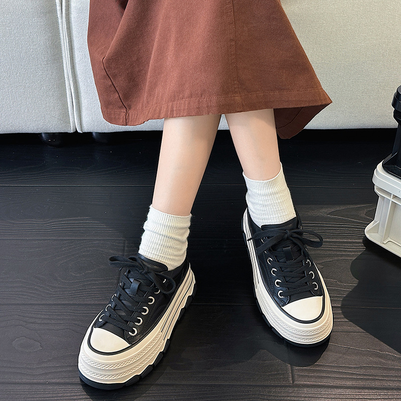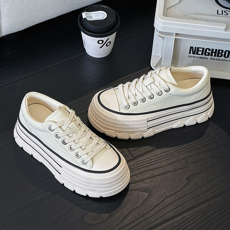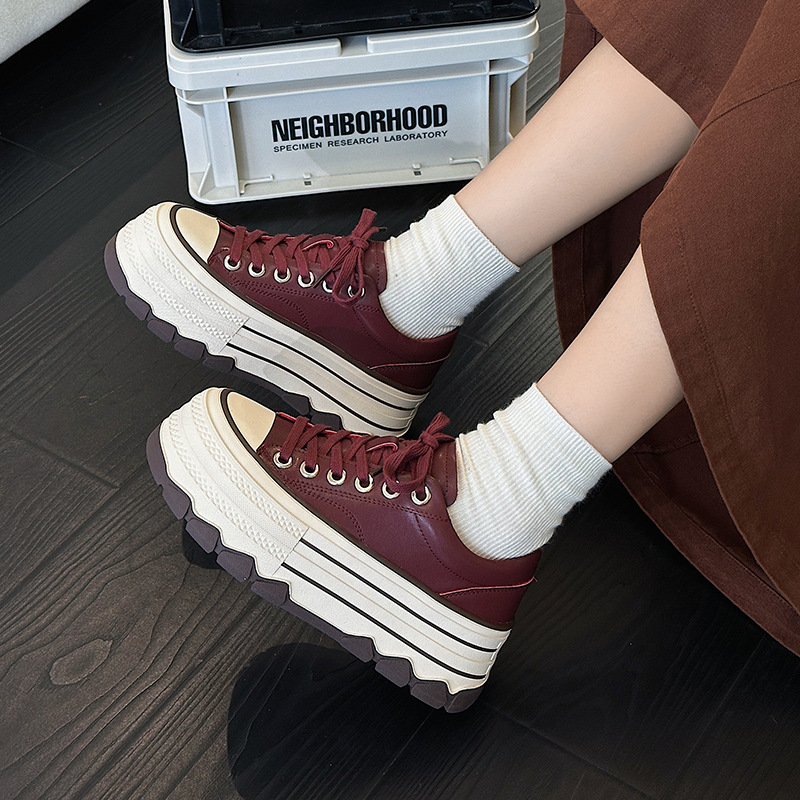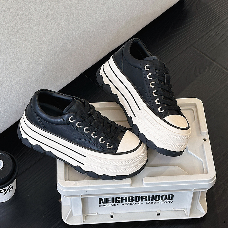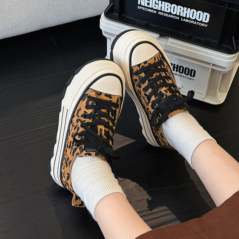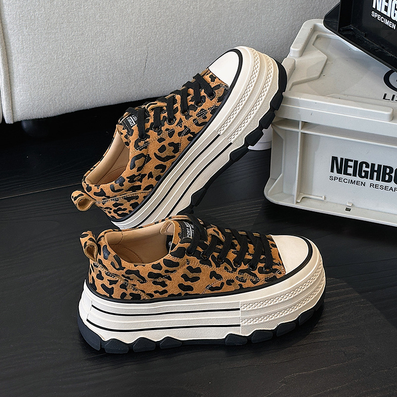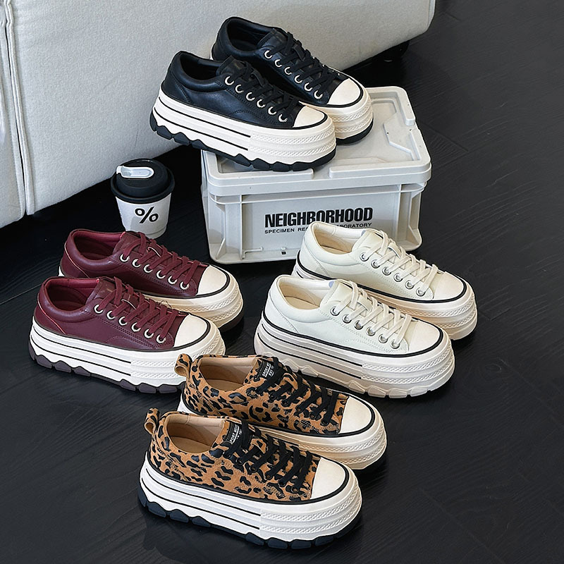 플랫폼 밑창 레오파드 프린트 캐주얼 스니커즈 여성용 2024 패션 천연 가죽 키높이 다용도 작은 키 여성을 위한 화이트 슈즈 상품번호 6989스토어 가기