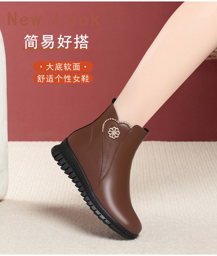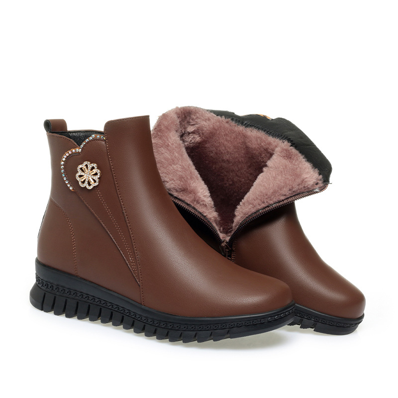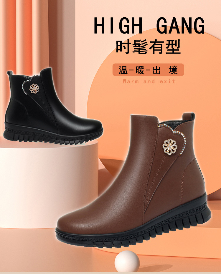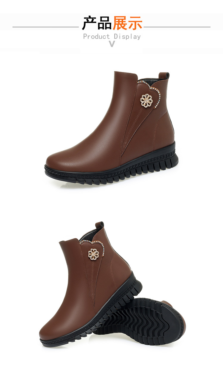 가을 겨울 엄마용 면화 신발, 가죽 신발, 중년 여성용 숏부츠, 보온성 강화, 노인용, 할머니용, 다용도 신발, 도매