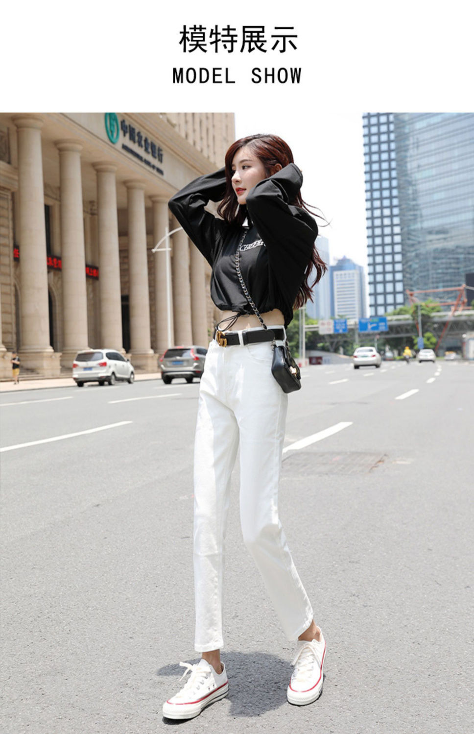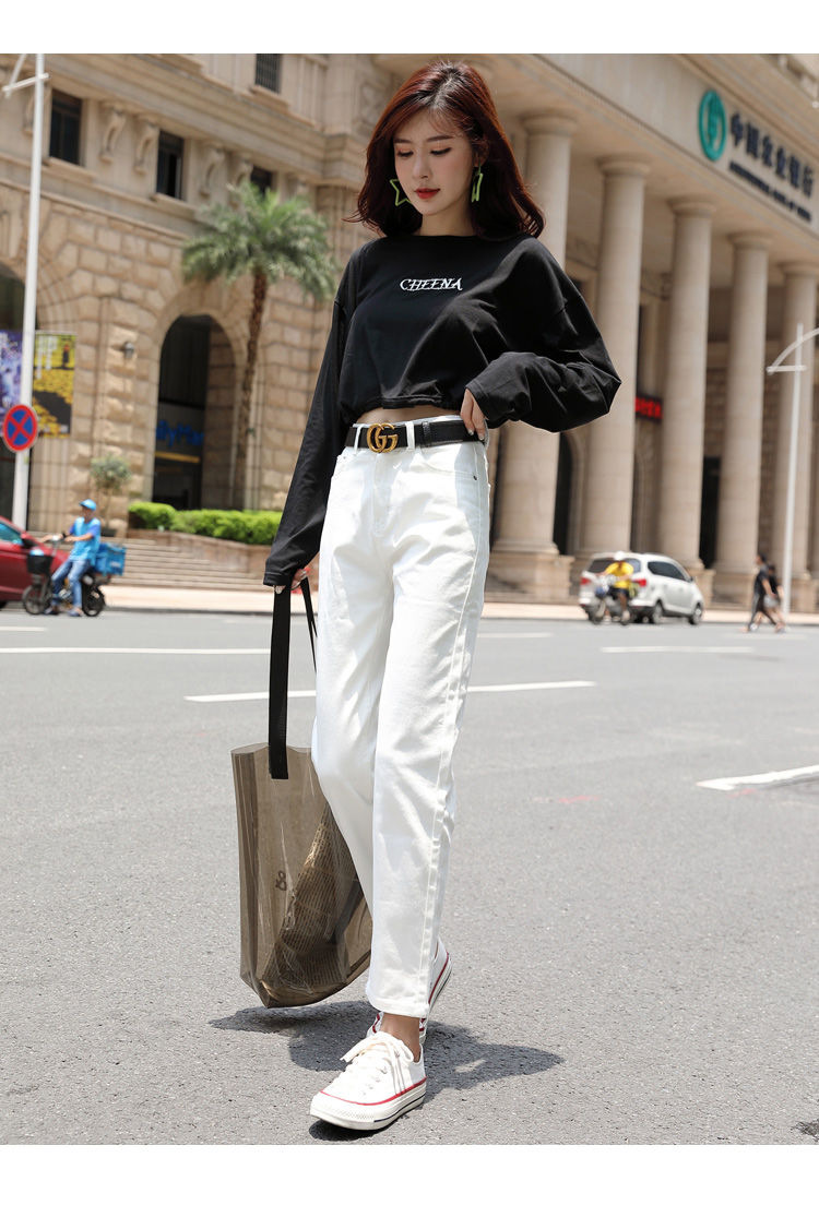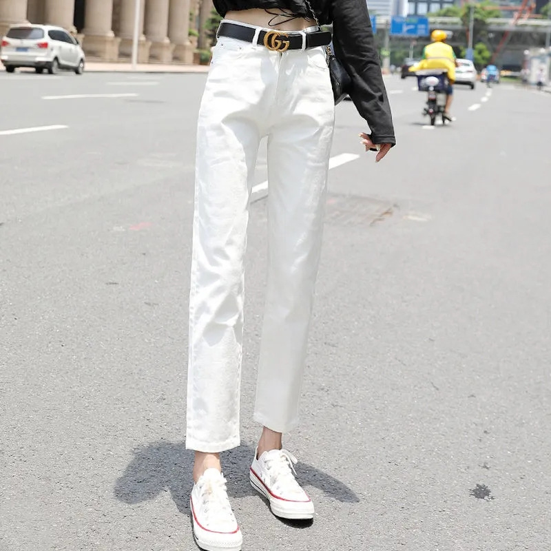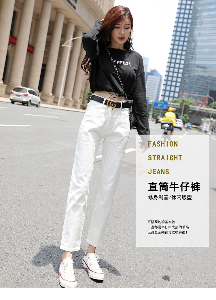 2024 봄과 가을 높은 허리 Harlan 스트레이트 크롭 느슨한 슬림 넓은 다리 청바지 여자 한국식 올매치 학생