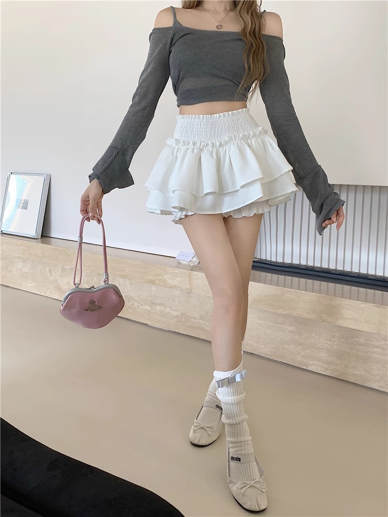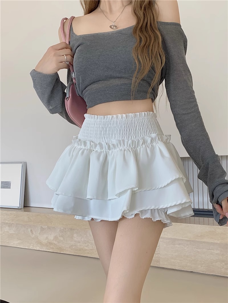 발레 스타일 스커트 여성 여름 한국 스타일 2024 새로운 높은 허리 슬리밍 디자인 달콤한 매운 케이크 푹신한 스커트