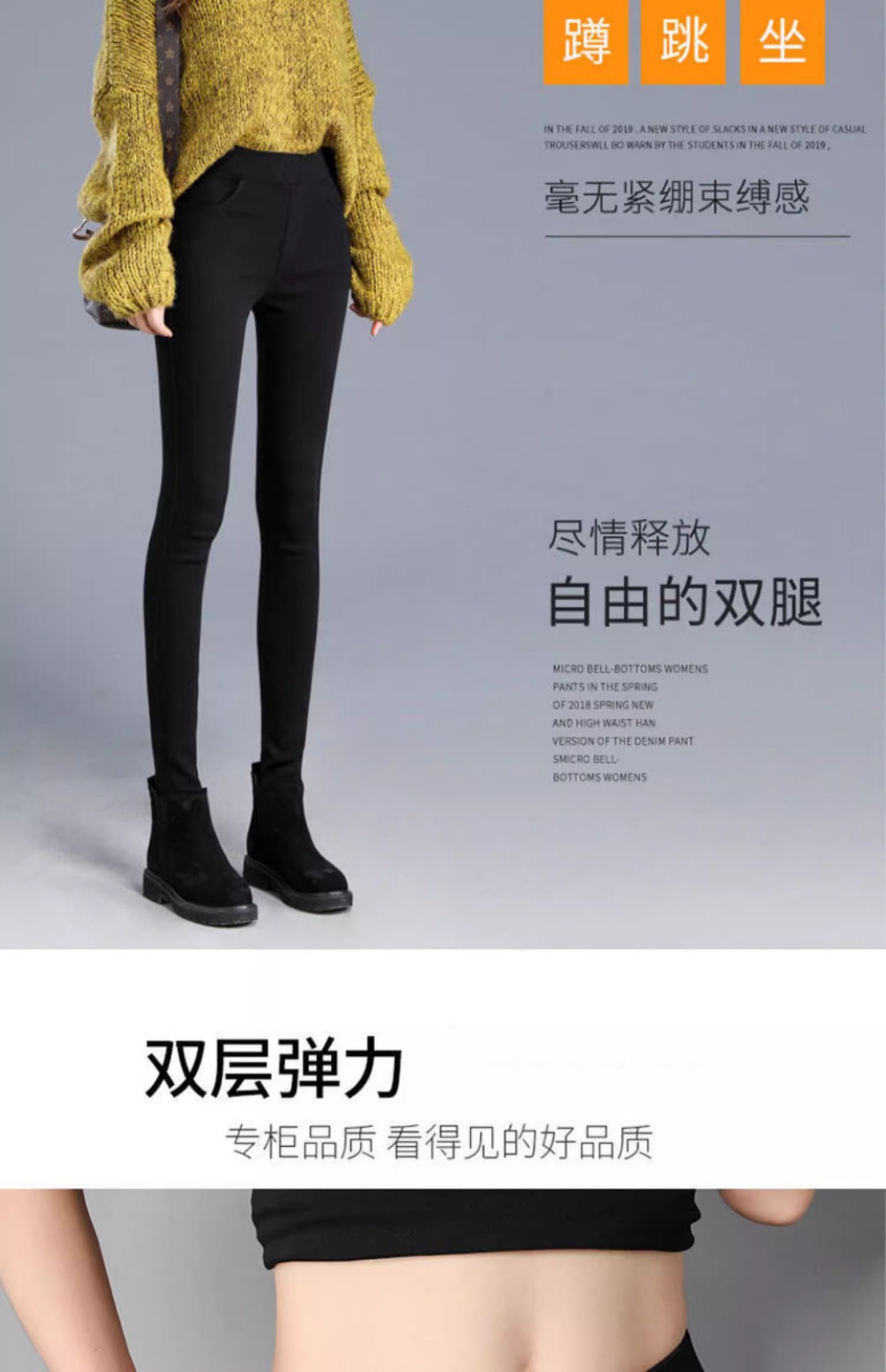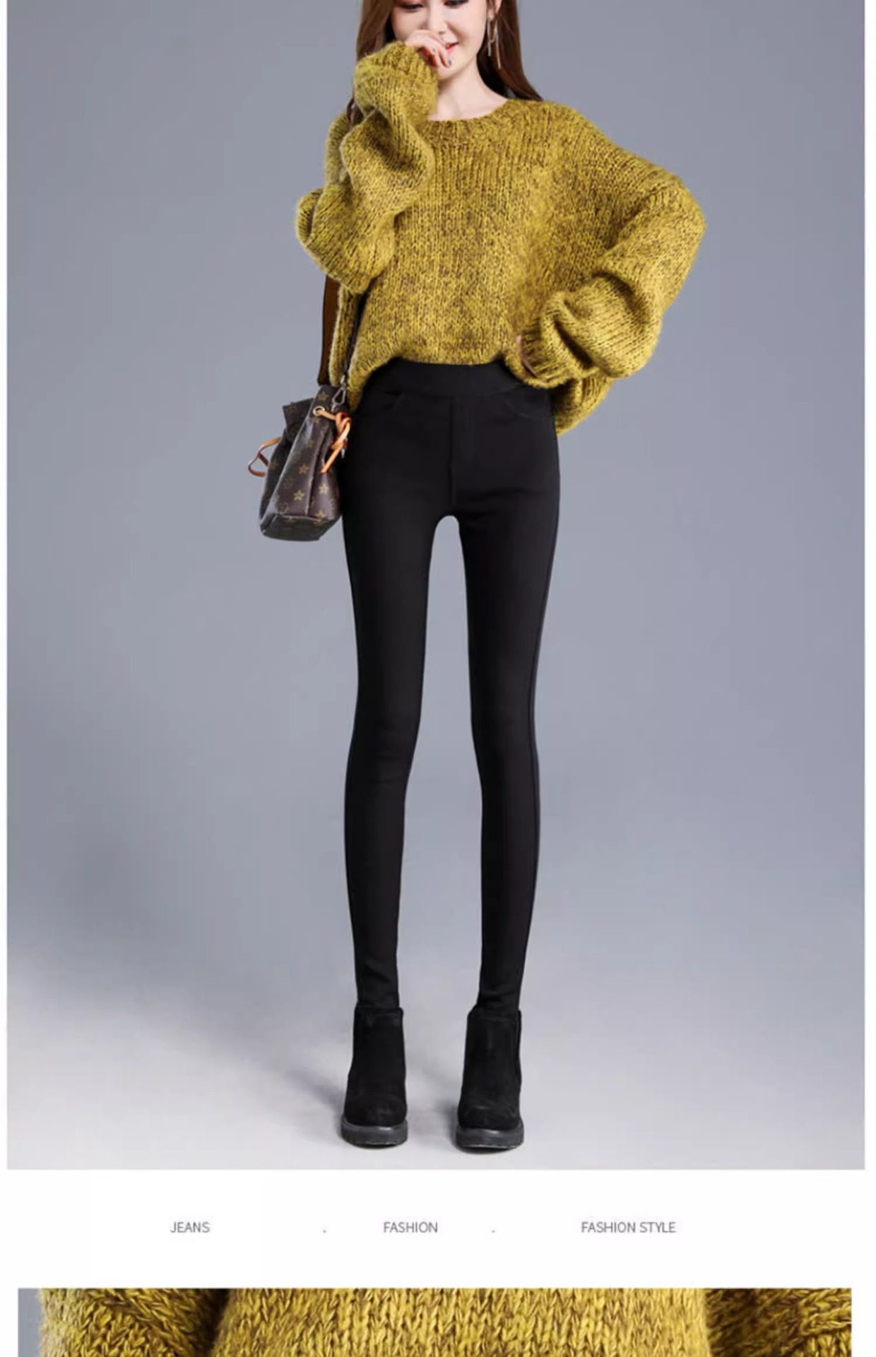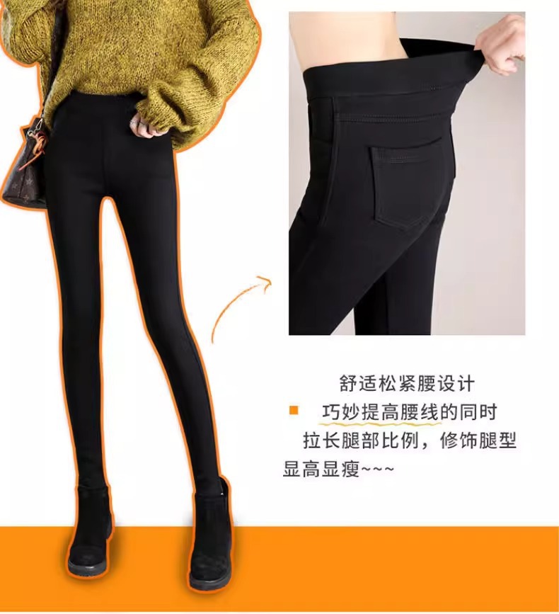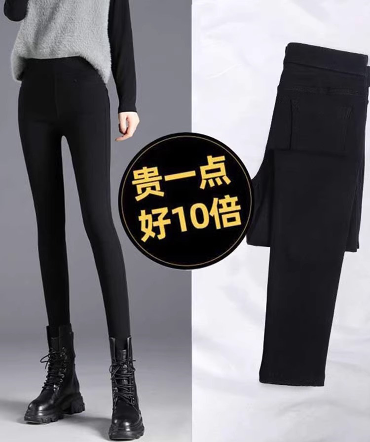 검은 모방 데님 레깅스 여성의 가을과 겨울 기모 높은 허리 타이트 스태프 바지 슬리밍 연필 레깅스 매직 바지스토어 가기