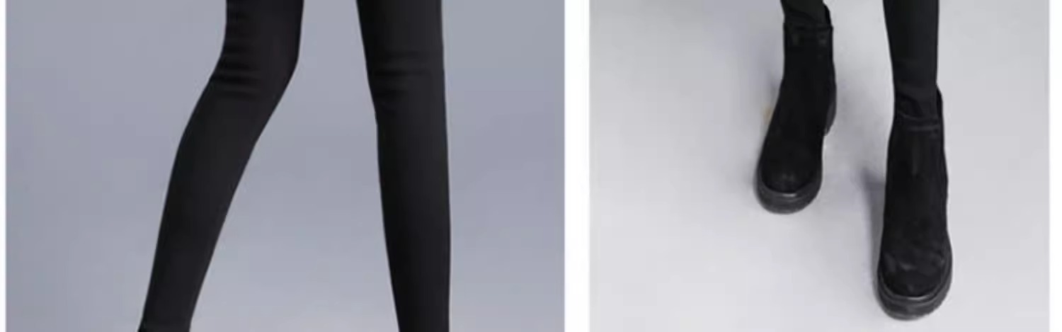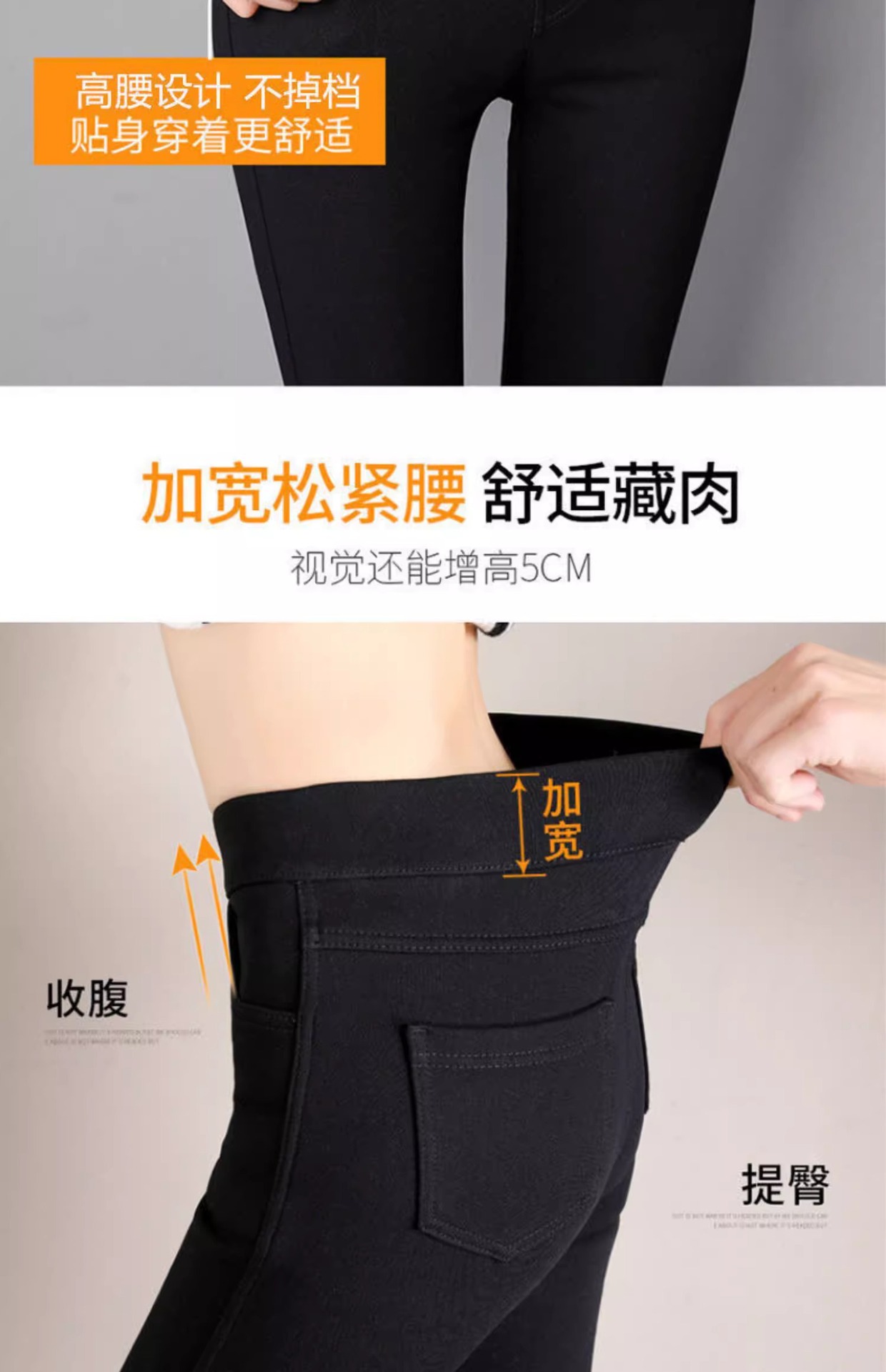 검은 모방 데님 레깅스 여성의 가을과 겨울 기모 높은 허리 타이트 스태프 바지 슬리밍 연필 레깅스 매직 바지