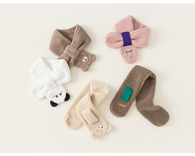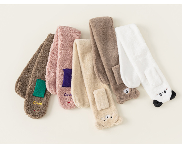 봉, 어린이 귀여운 가을 겨울 스카프 한국식 만화 동물 웃는 얼굴 대비 따뜻한 목 세트 어린이 스카프스토어 가기