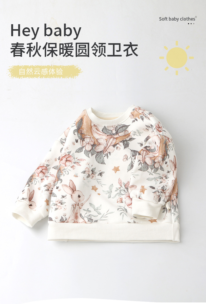 새로운 어린이용 캐주얼 보온 복합 벨벳 스웨트셔츠, 부드럽고 편안한 남녀 아기용 봄 가을 보온 A급 상의스토어 가기