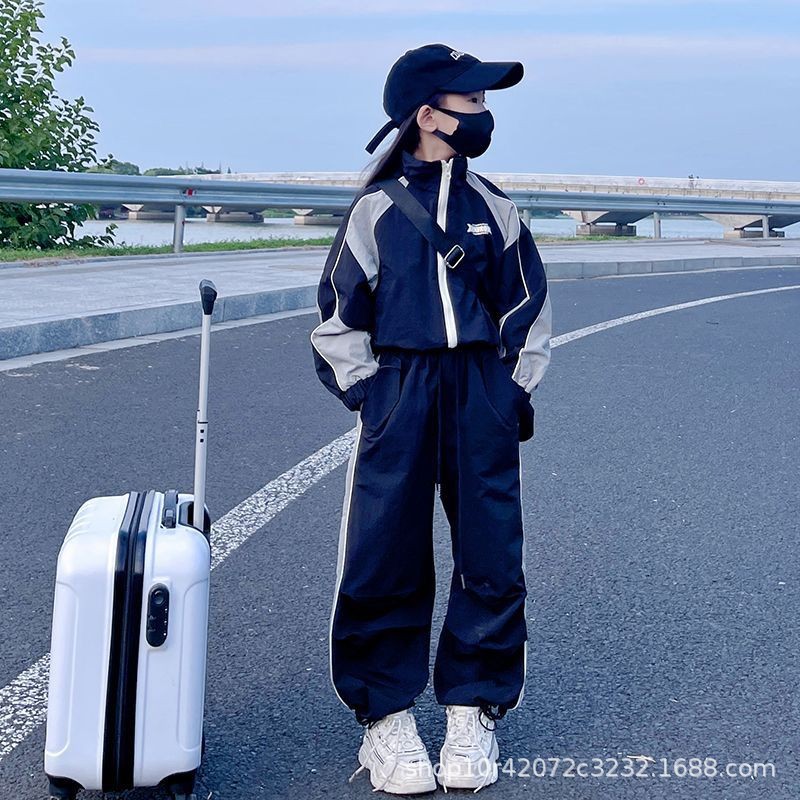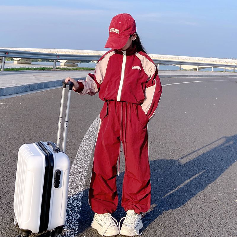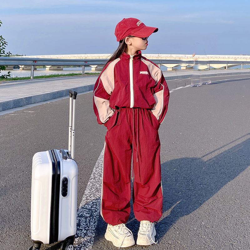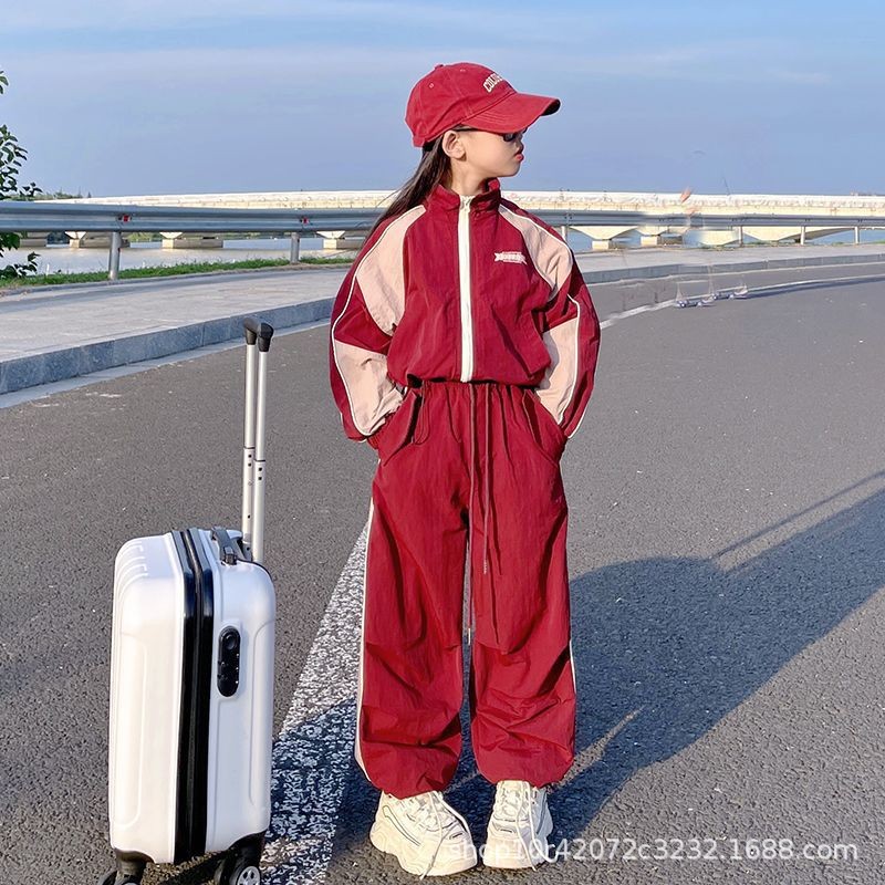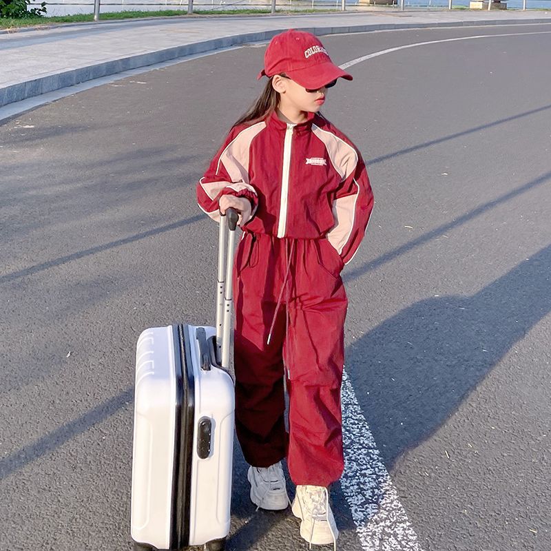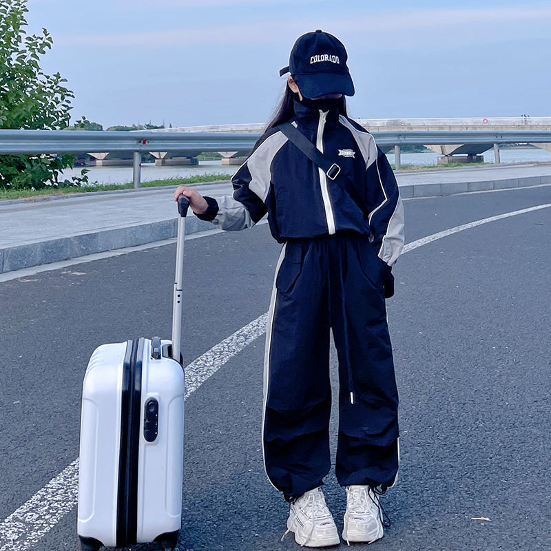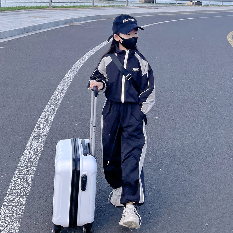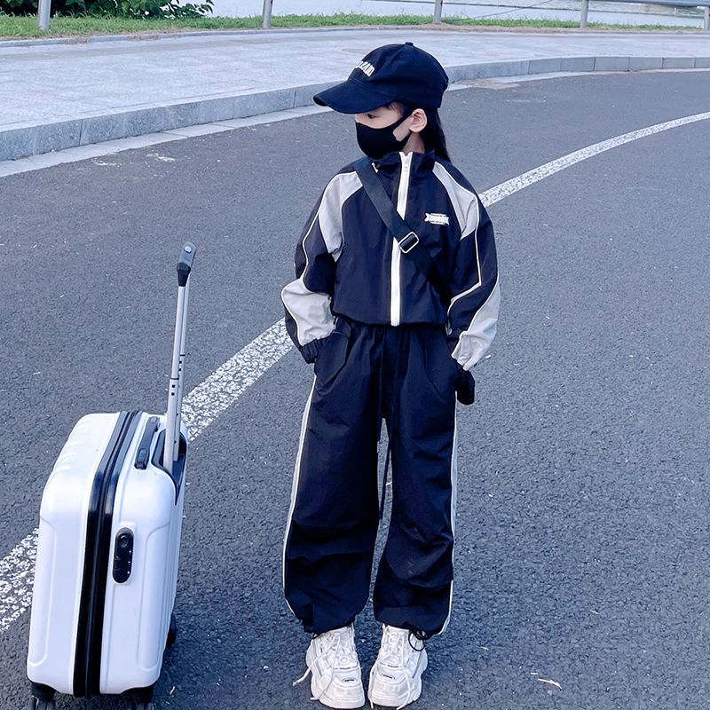 가을 2024 새로운 소녀 서양식 스포츠 세트 큰 어린이 캐주얼 지퍼 셔츠 재킷 바지 투피스 세트스토어 가기