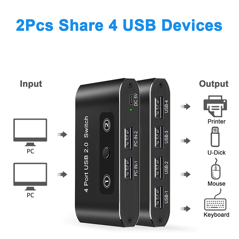 USB3.0 스위치 2 in 4 out USB 변환기 4 포트 프린터 U 디스크 마우스 키보드 공유 스위치