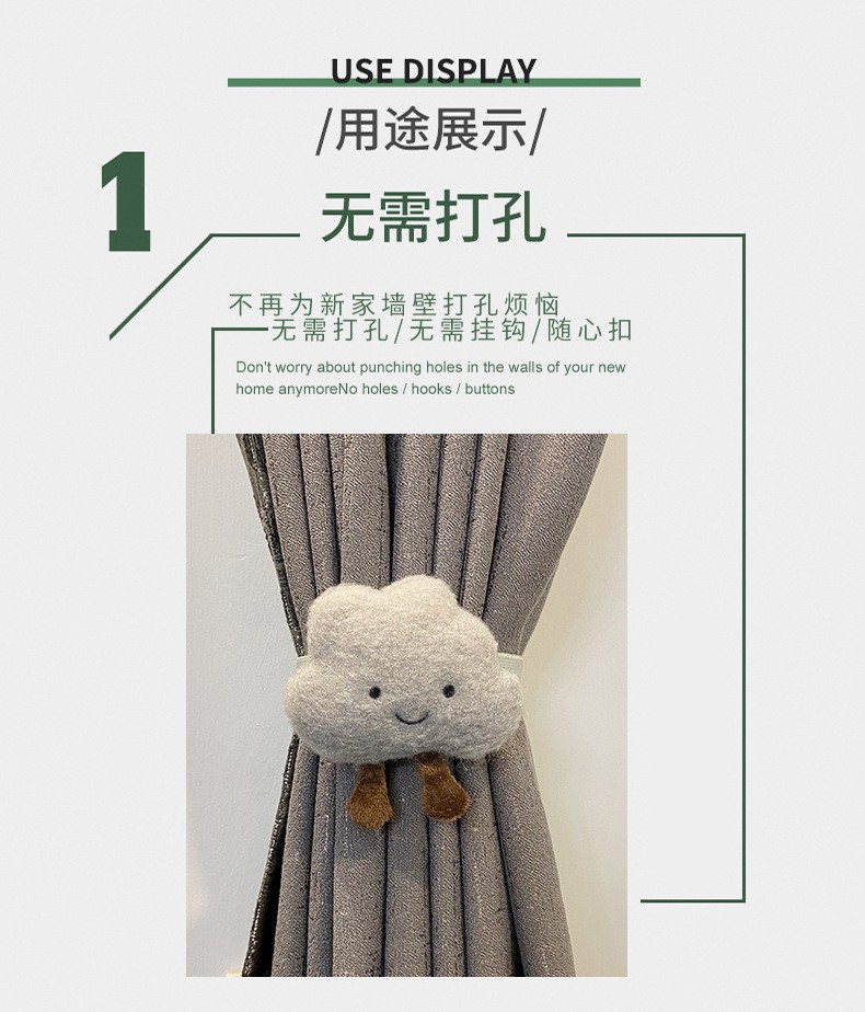 만화 커튼 끈 어린이 방 장식 커튼 고리 귀여운 인형 끈 구름 모양스토어 가기
