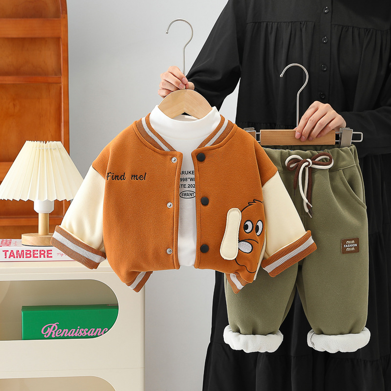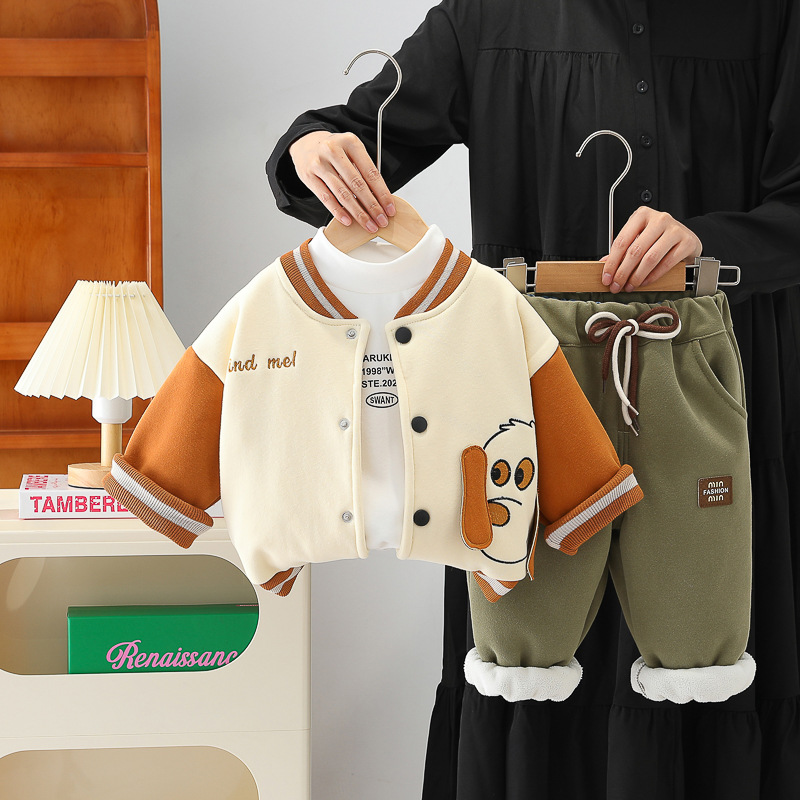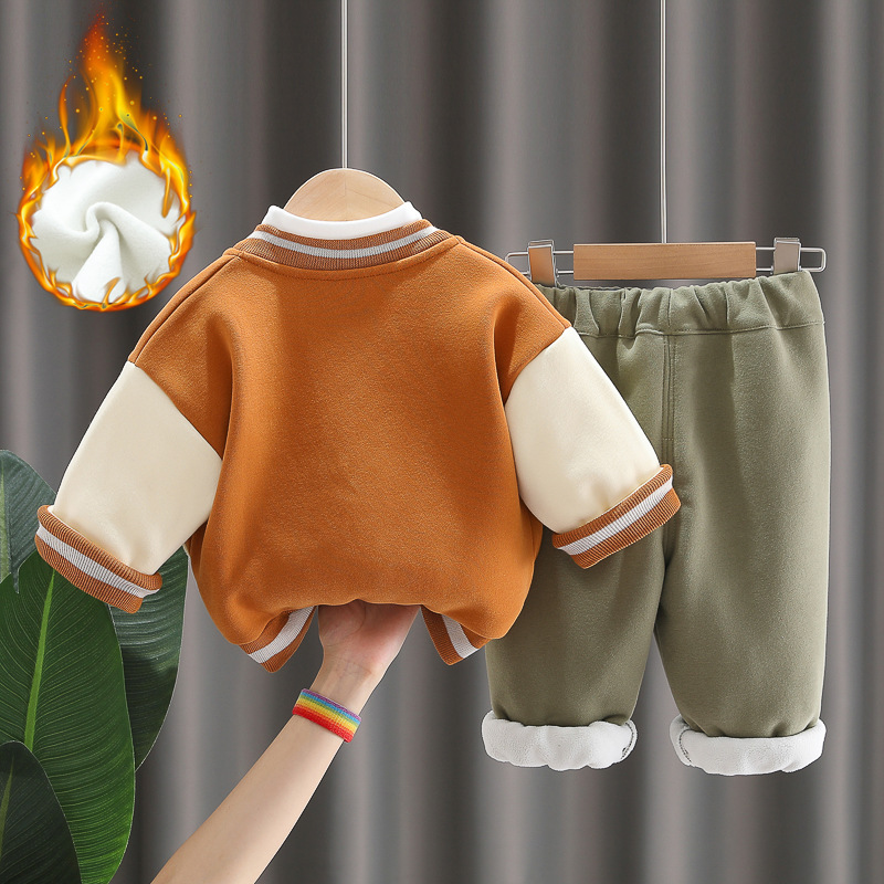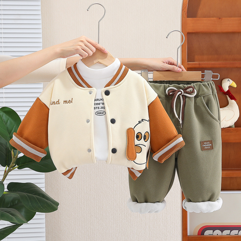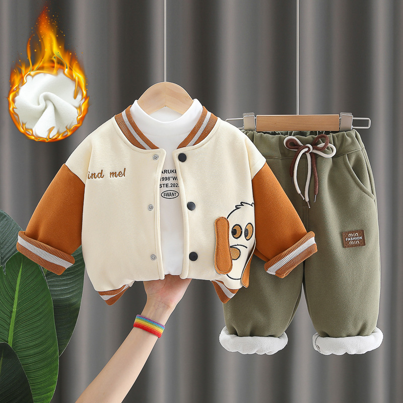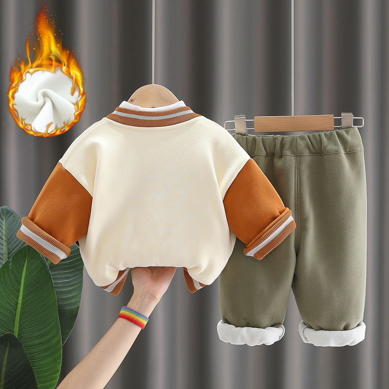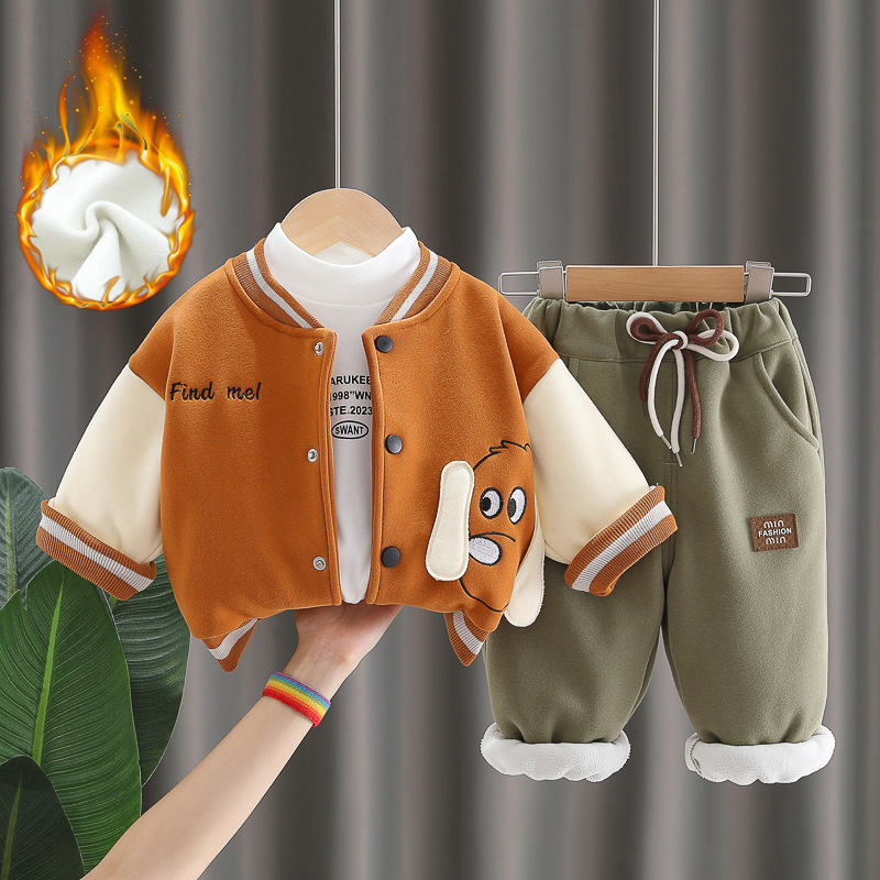 소년 가을과 겨울 2024 새로운 외국 스타일 기모 만화 세트 아기 겨울 캐주얼 유행 아기 옷스토어 가기