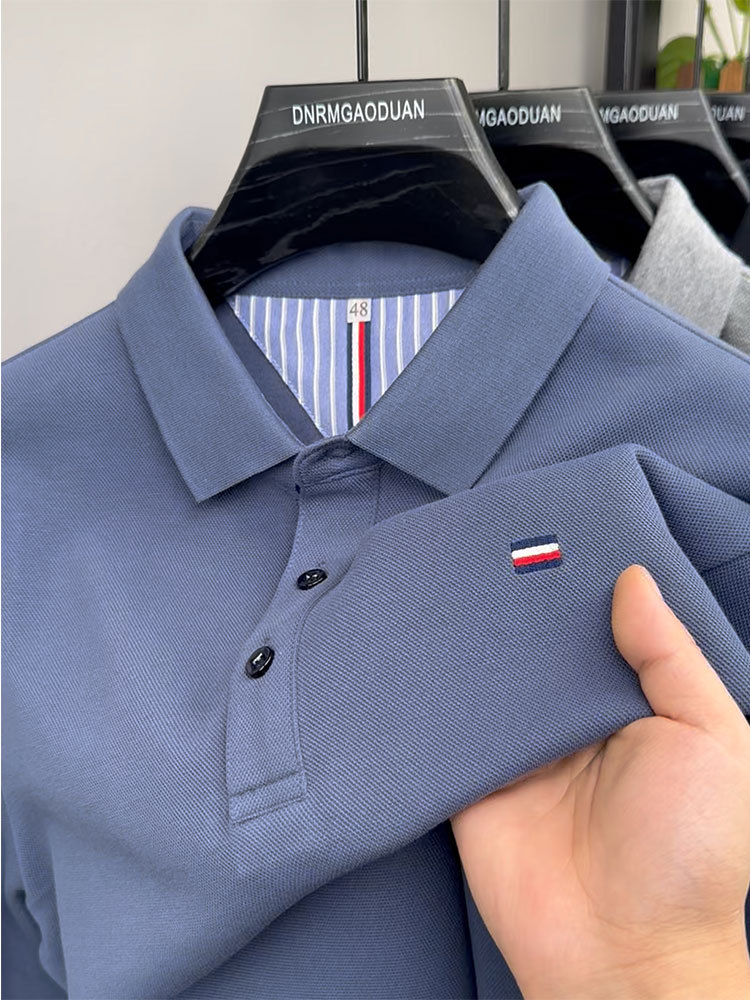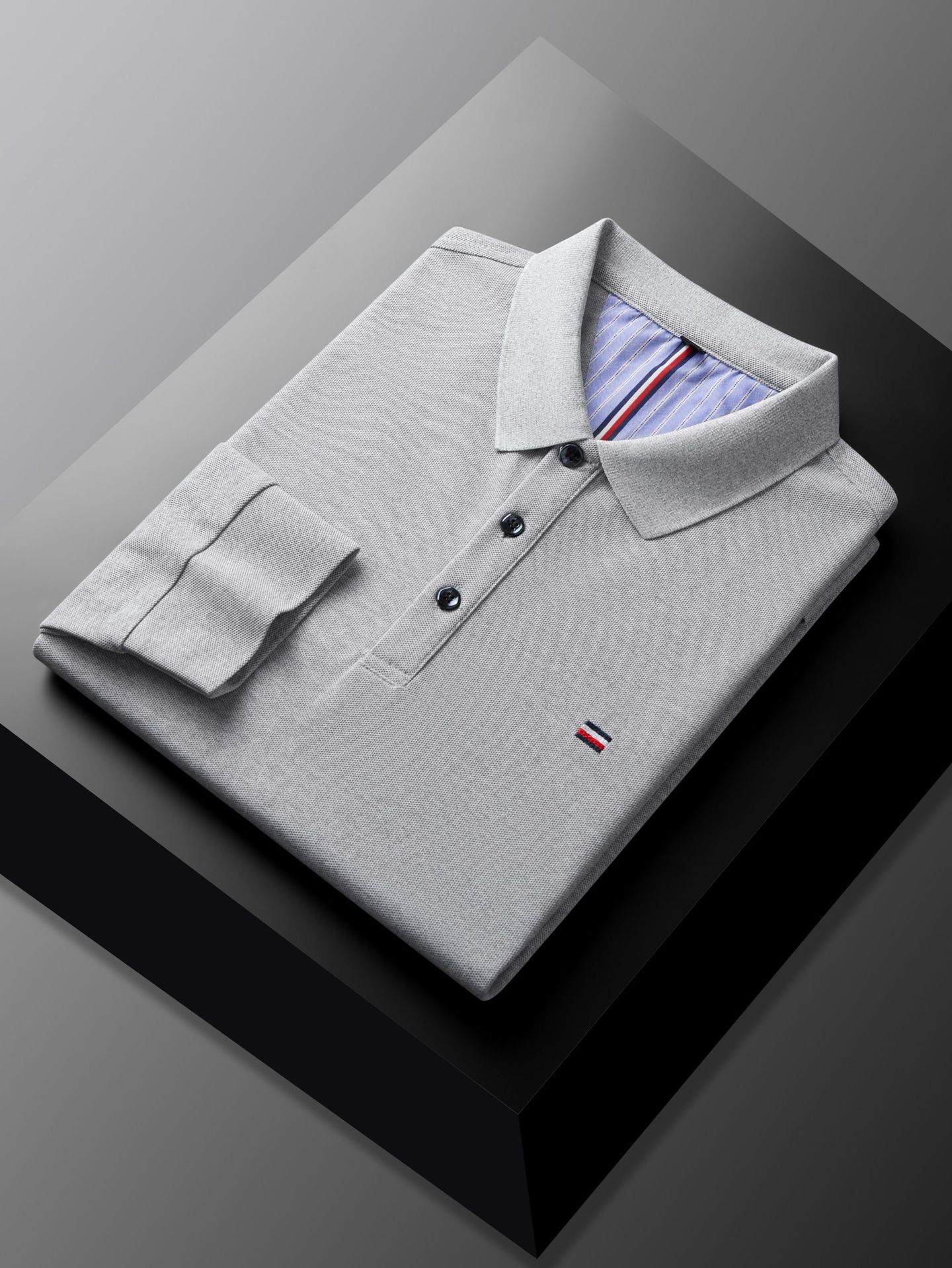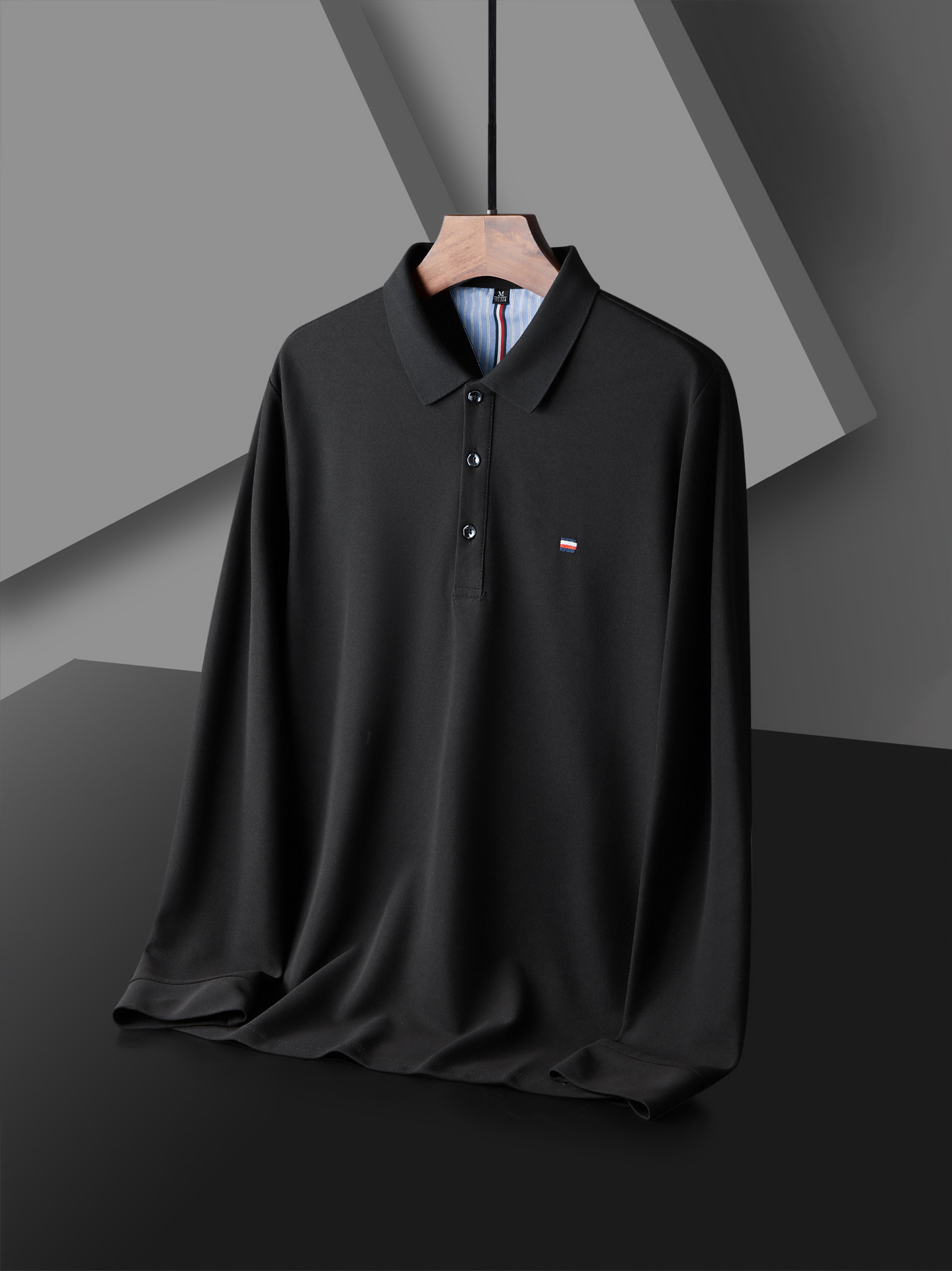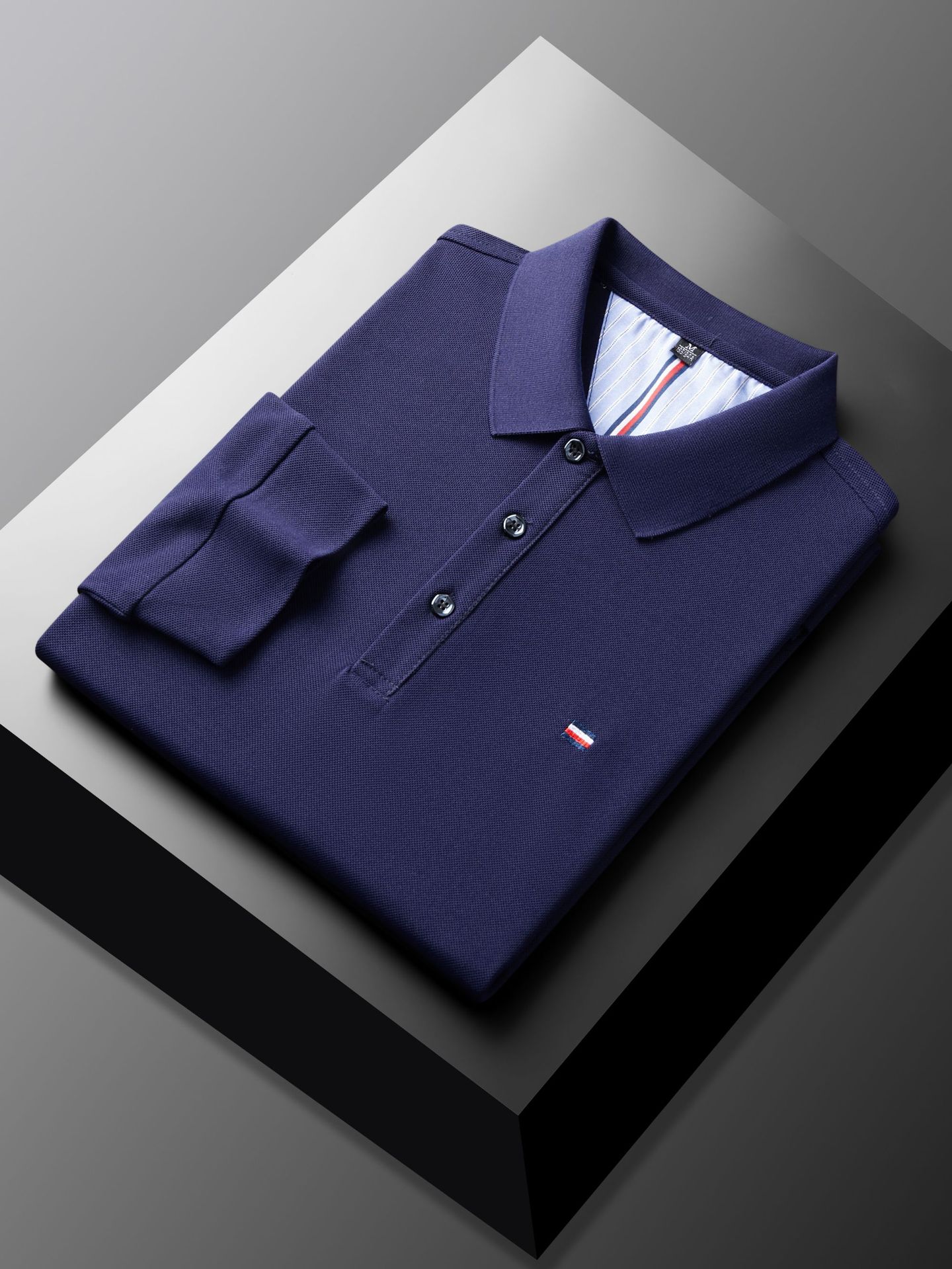 국경 간 대외 무역 새로운 봄과 가을 자수 옷깃 POLO 셔츠 긴 소매 남성 간단한 패션 캐주얼 아빠베이스 셔츠