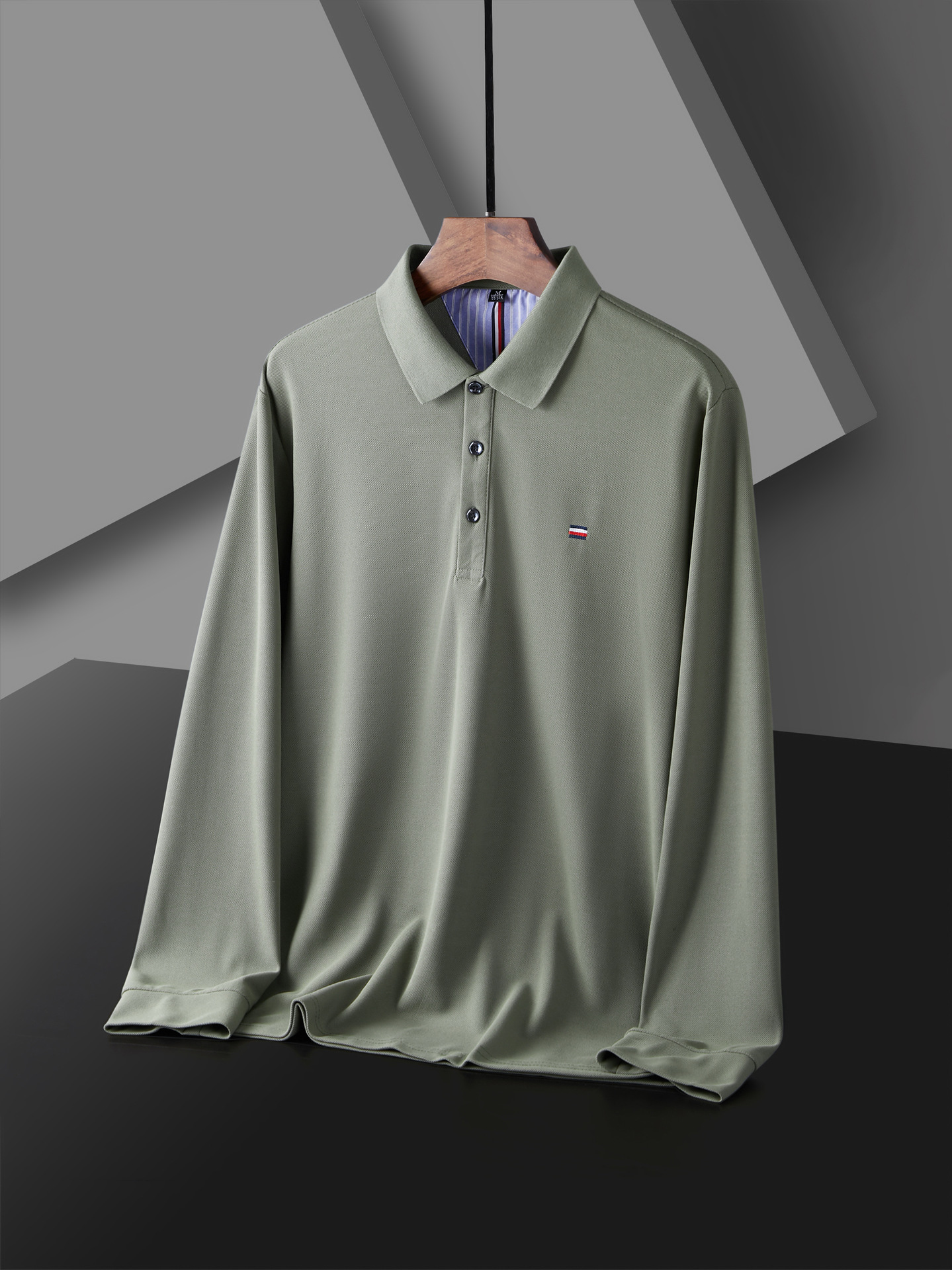 국경 간 대외 무역 새로운 봄과 가을 자수 옷깃 POLO 셔츠 긴 소매 남성 간단한 패션 캐주얼 아빠베이스 셔츠스토어 가기