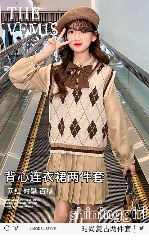 여자 세트 치마 새 봄 원피스 사교계 중다 어린이 여성 봄과 가을 서양식 유행 공주 원피스 투피스 세트스토어 가기