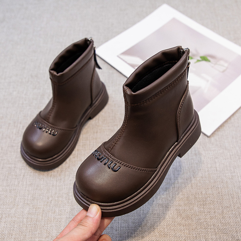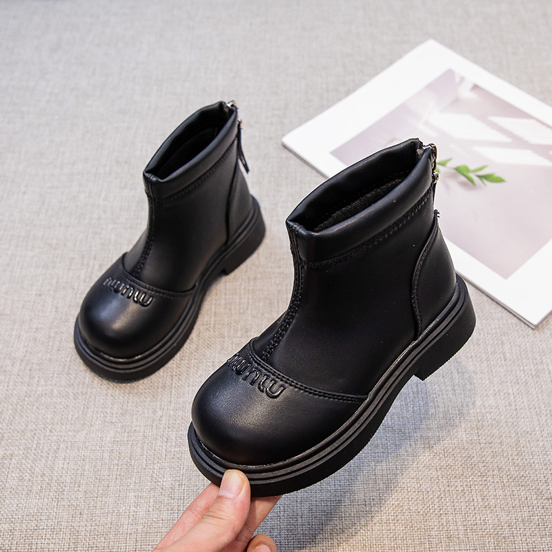 패션 소녀 중간 배럴 마틴 2024 가을 새로운 어린이 공주 신발 로퍼 소프트 단독 신발 영국 가죽 부츠
