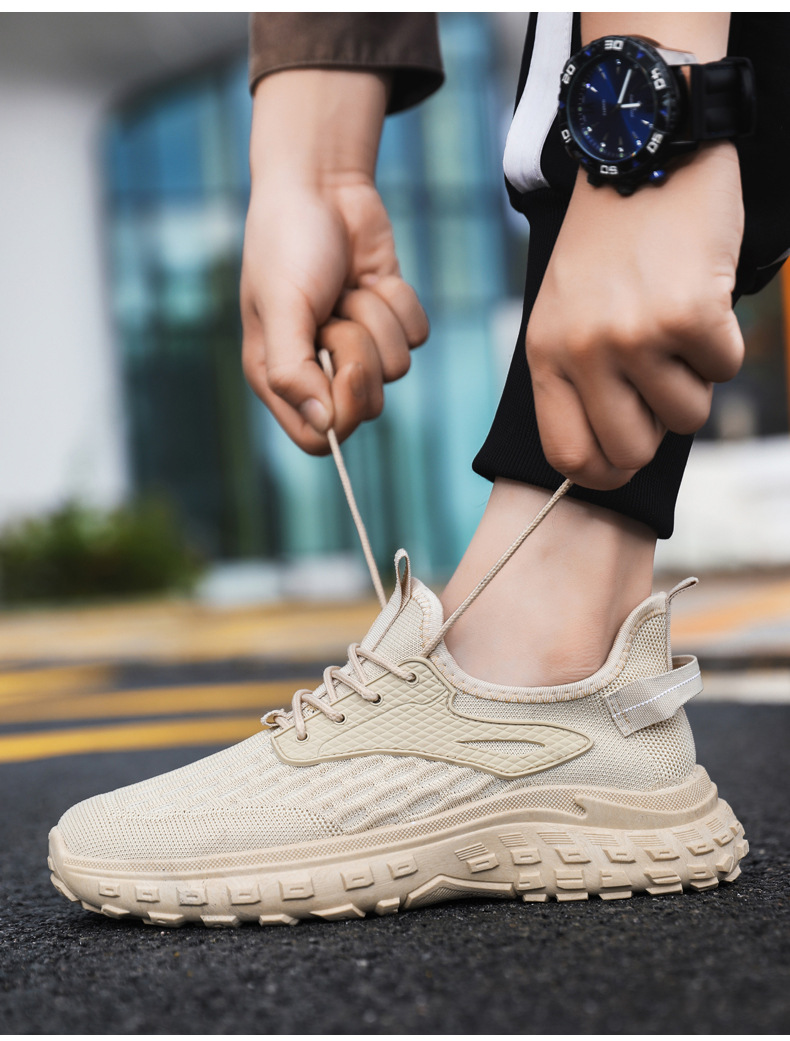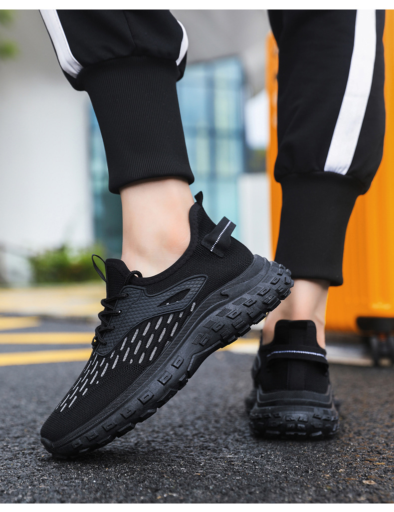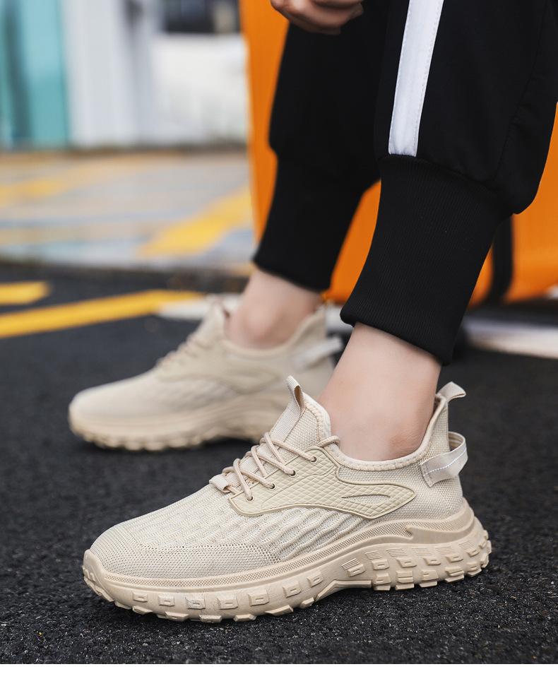 가을 남성 신발 새로운 플라이 짠 두꺼운 밑창 패션 트렌드 야외 올 매치 운동화 메쉬 통기성 경량 캐주얼 신발스토어 가기