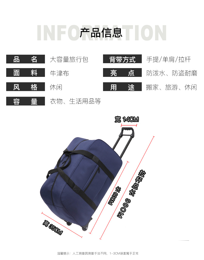 새로운 트롤리 가방 접이식 더플 가방 여성 대용량 옥스포드 천 방수 휴대용 단거리 여행 가방 보관 가방스토어 가기