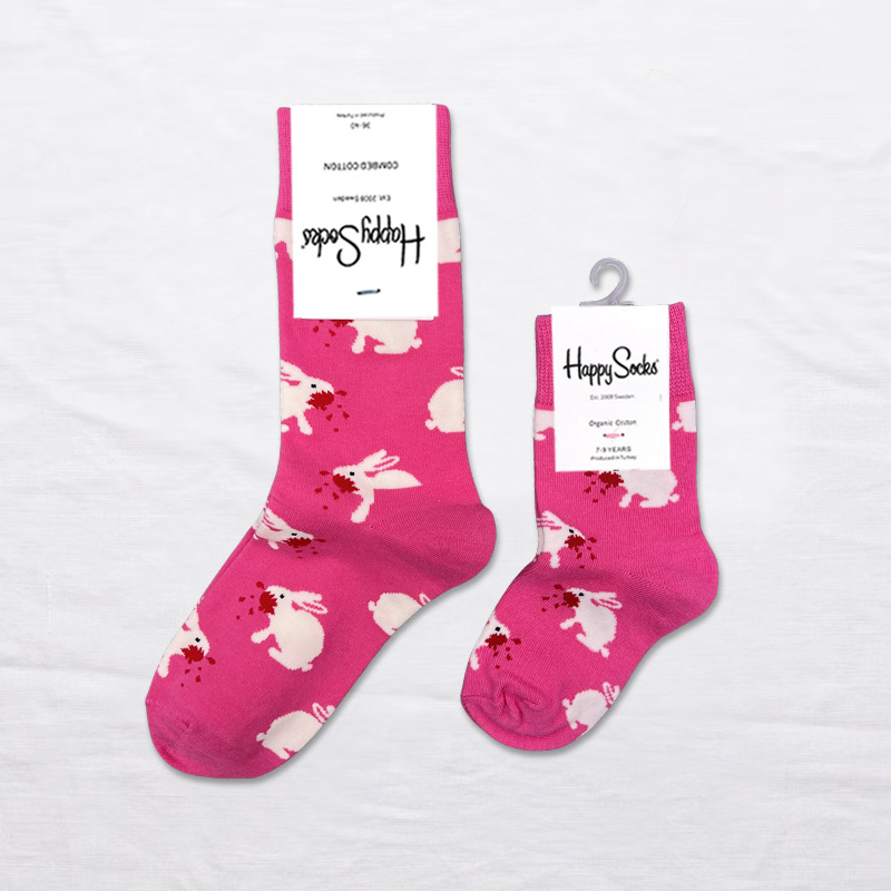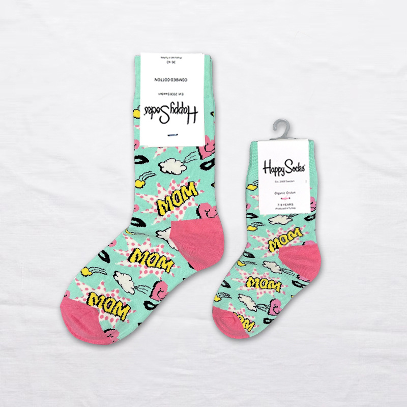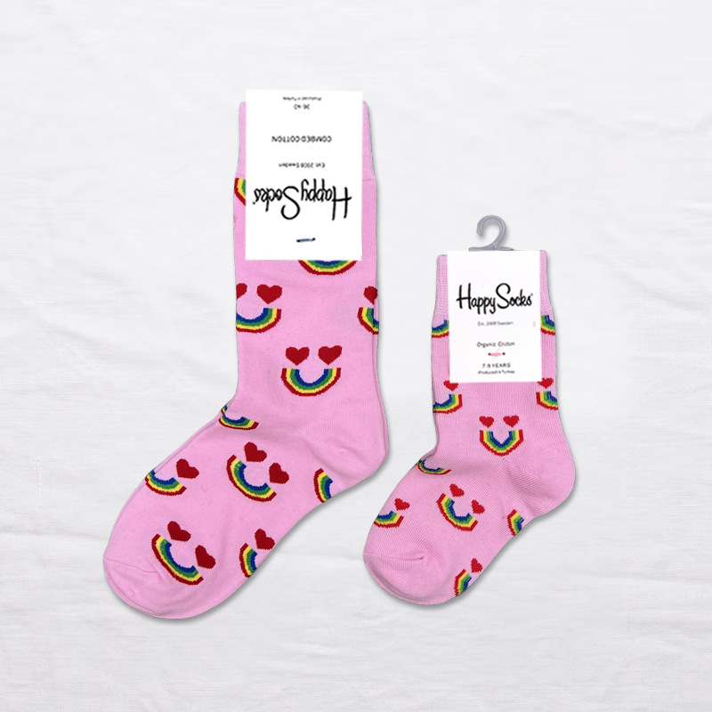 HappySocks 스웨덴 조수 브랜드 어린이 양말 만화 튜브 조수 하이 가죽 남성과 여성은 귀여운 도매 부모 자식을 착용합니다.