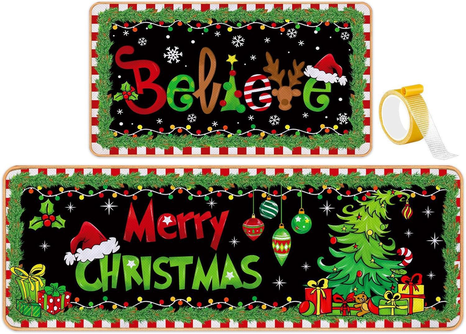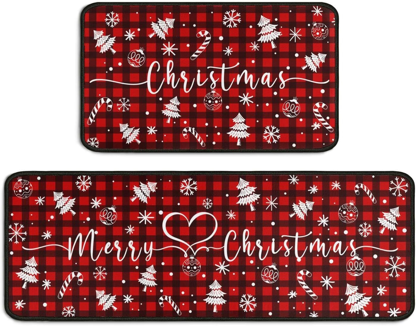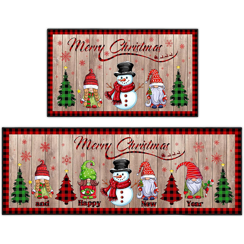 跨境美式圣诞节厨房垫家用长条两件套吸水耐脏脚垫入户易打理门垫