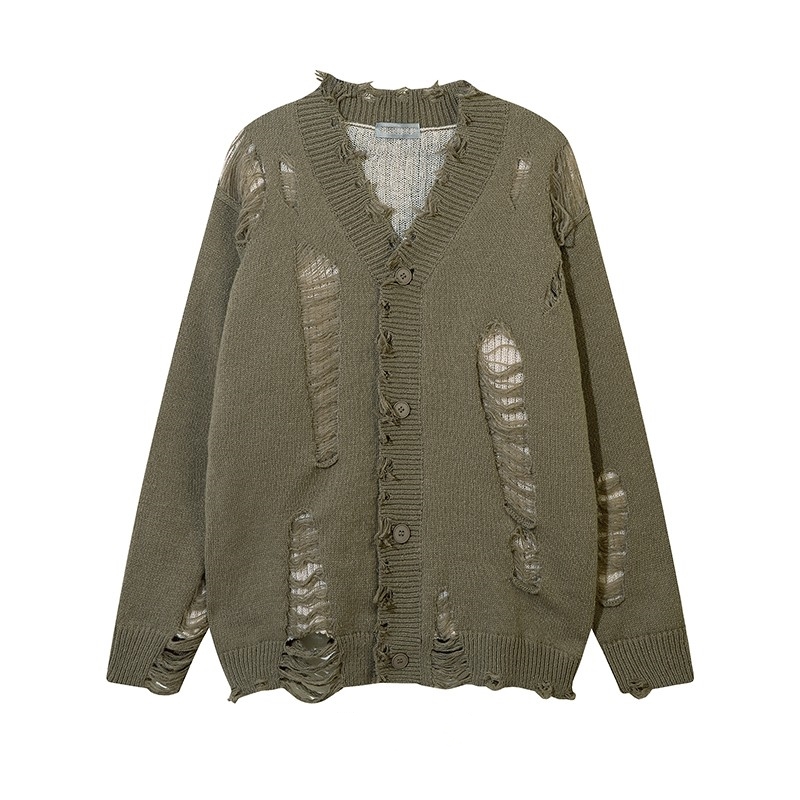 미국식 하이 스트리트 리핑 디자인 센스 니트웨어 남성 가을과 겨울 오버 사이즈 힙합 카디건 스웨터 코트 트렌디스토어 가기