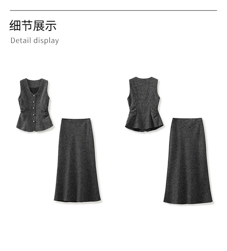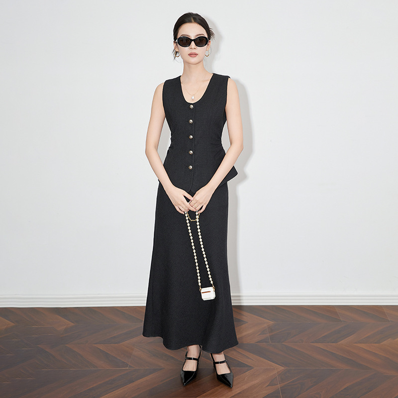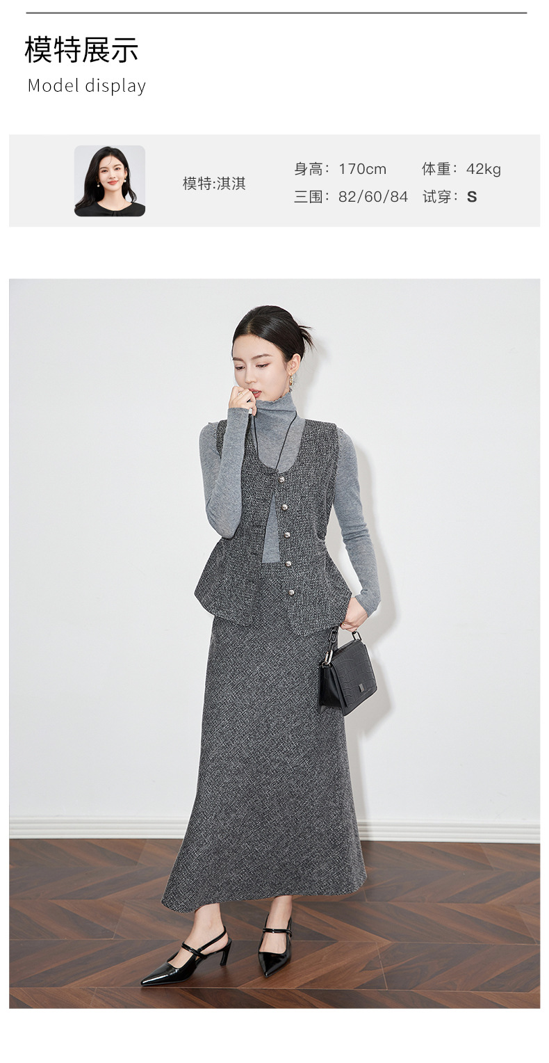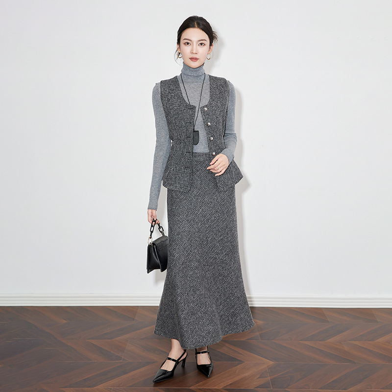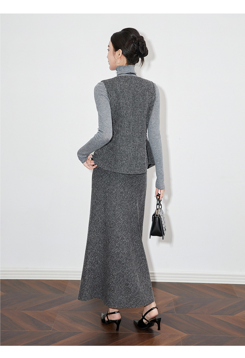 2430411-중공업 럭셔리 예비 원사 소재 올드 머니 패션 민소매 자켓 피쉬 오버 스커트 투피스 세트스토어 가기