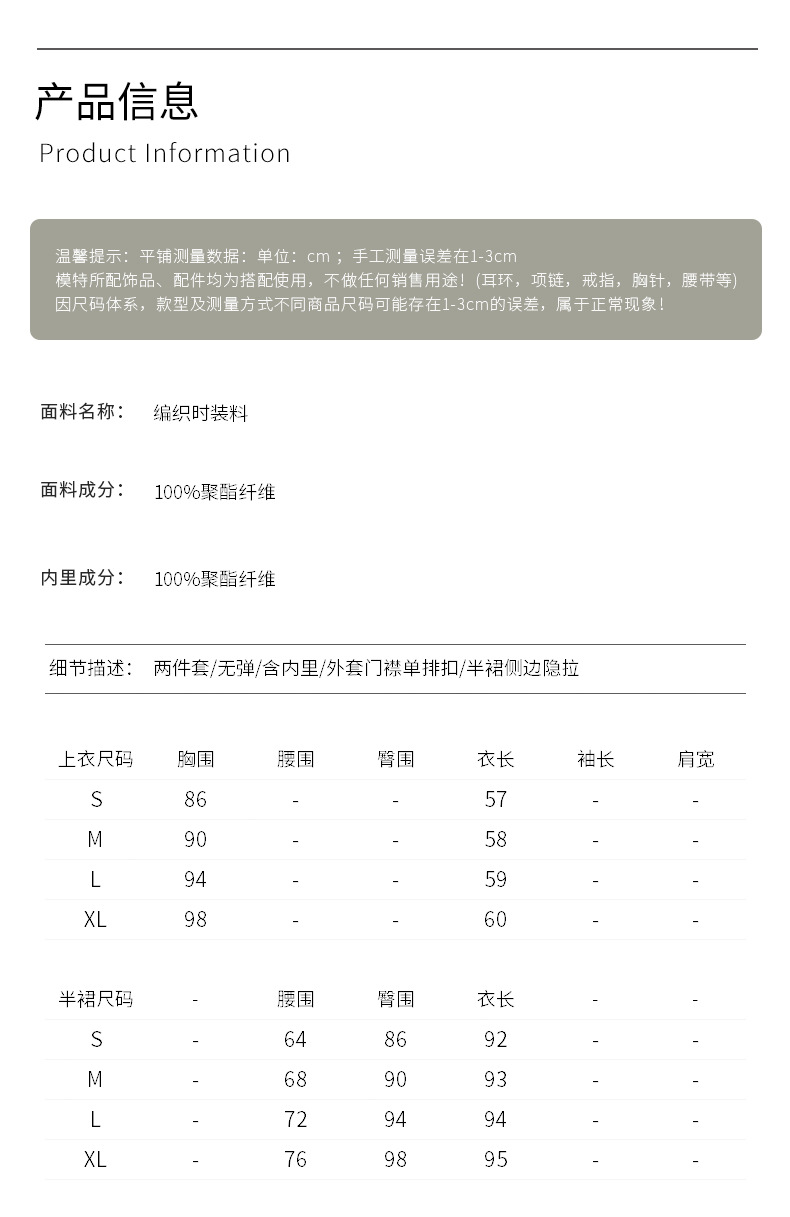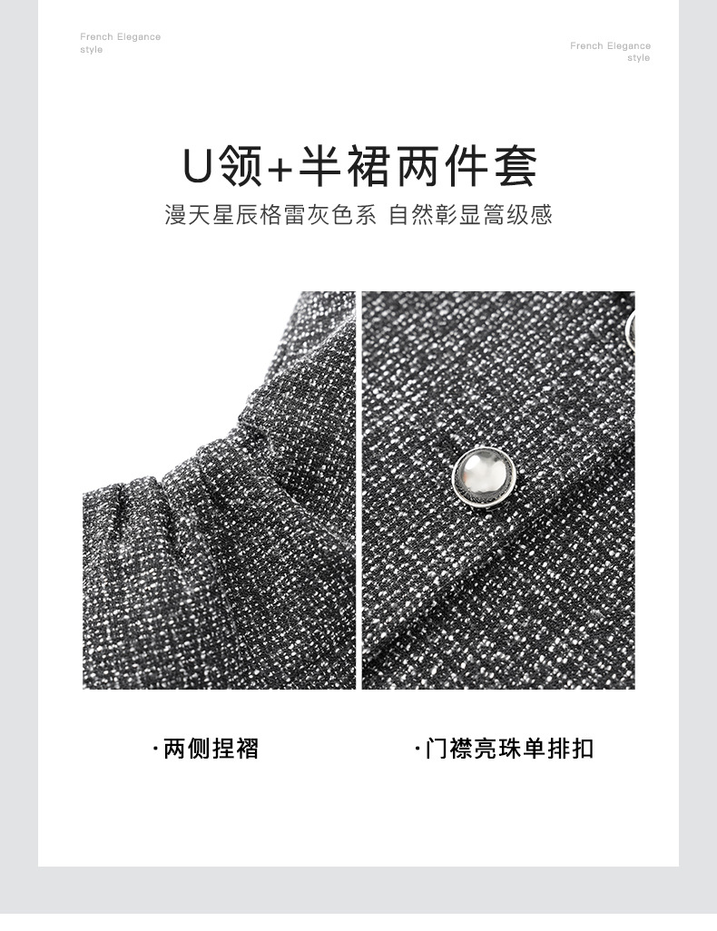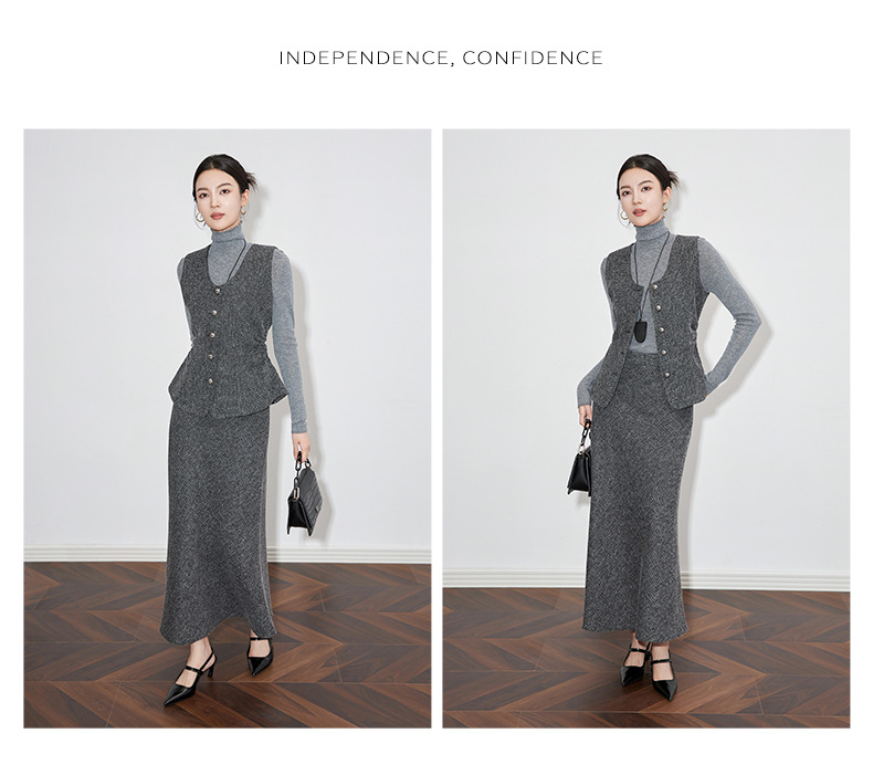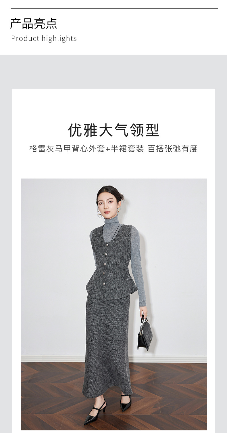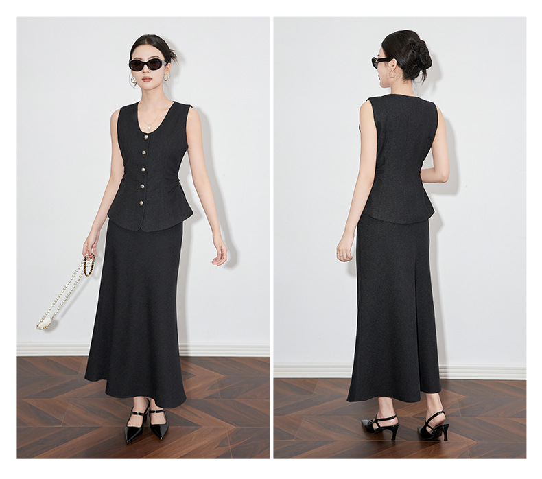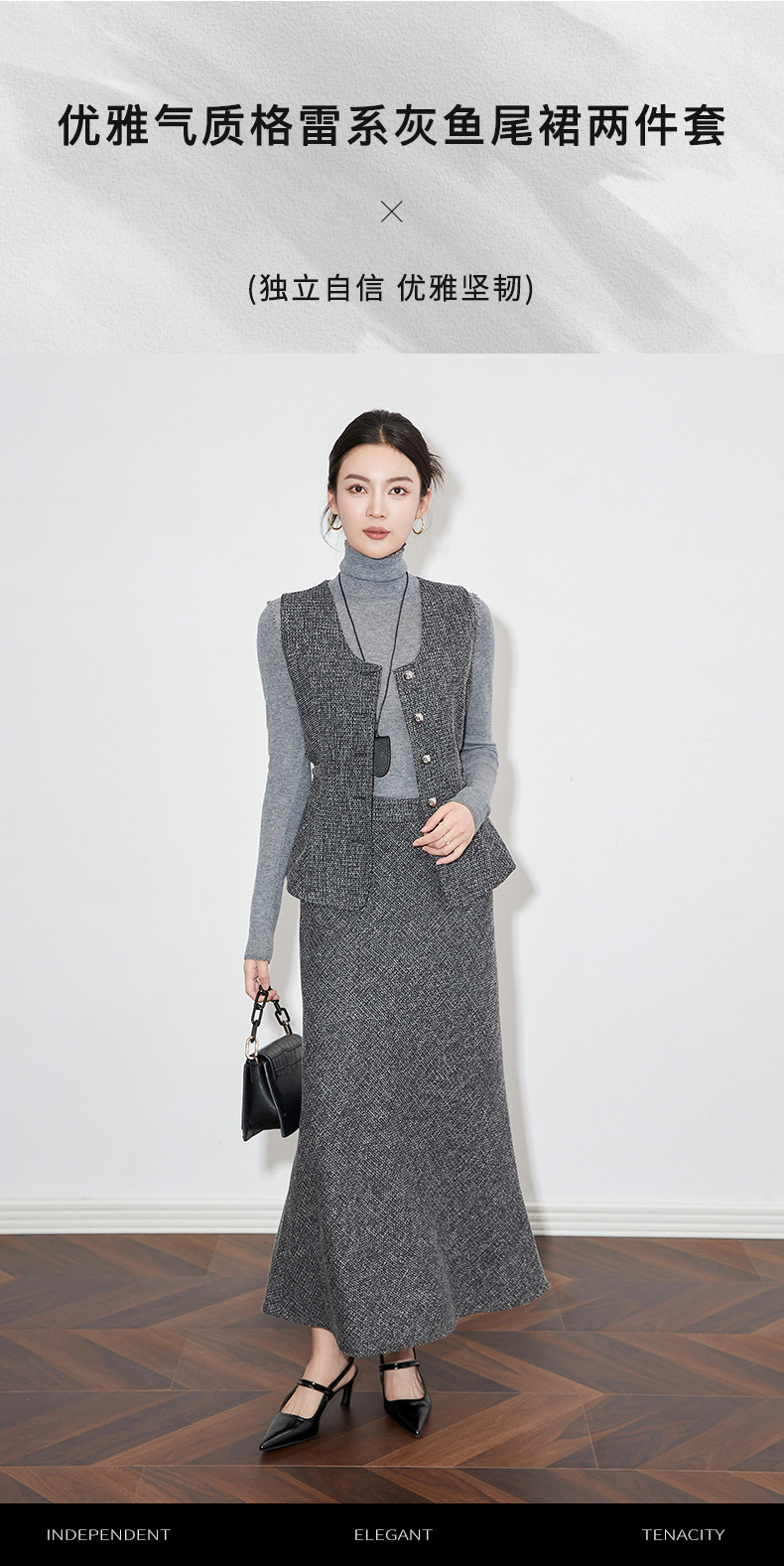 2430411-중공업 럭셔리 예비 원사 소재 올드 머니 패션 민소매 자켓 피쉬 오버 스커트 투피스 세트스토어 가기
