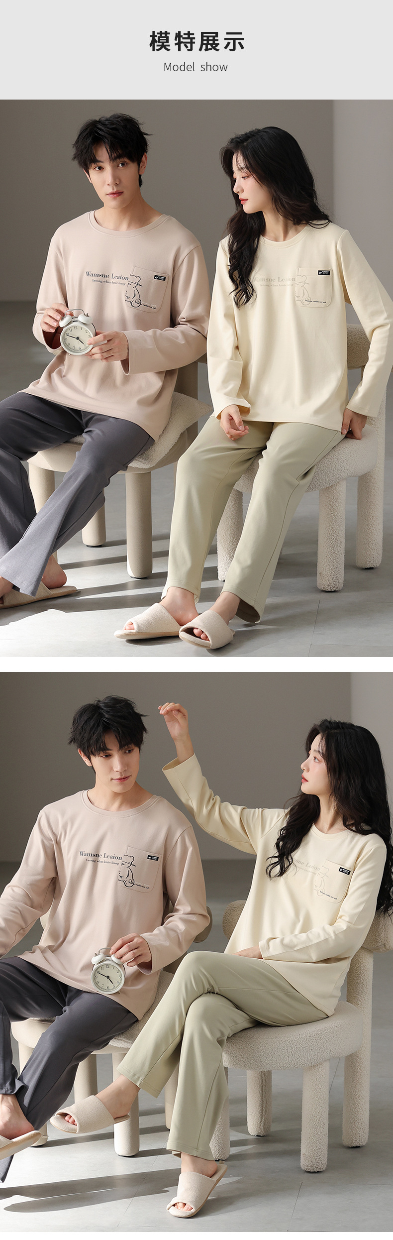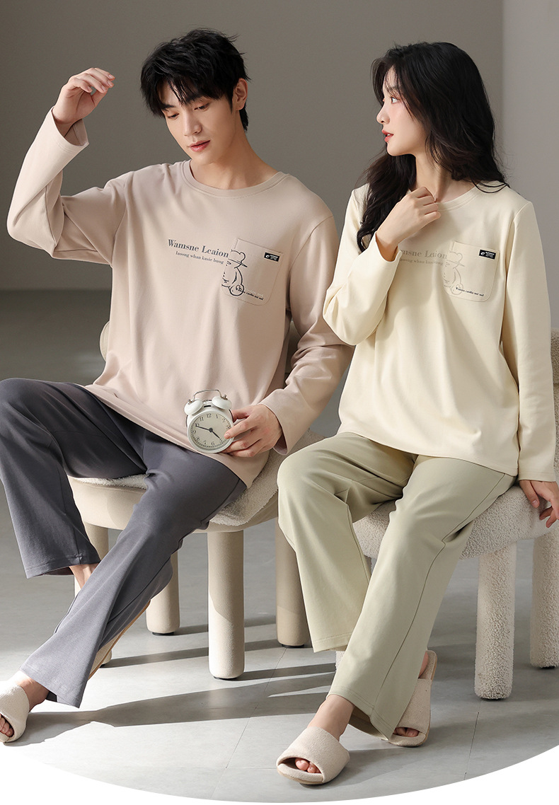 Yilubei Autumn New Lycra Cotton 커플 파자마 여성 라운드 넥 퓨어 코튼 긴 소매 남성 가을 겨울 홈 의류 플러스 사이즈스토어 가기