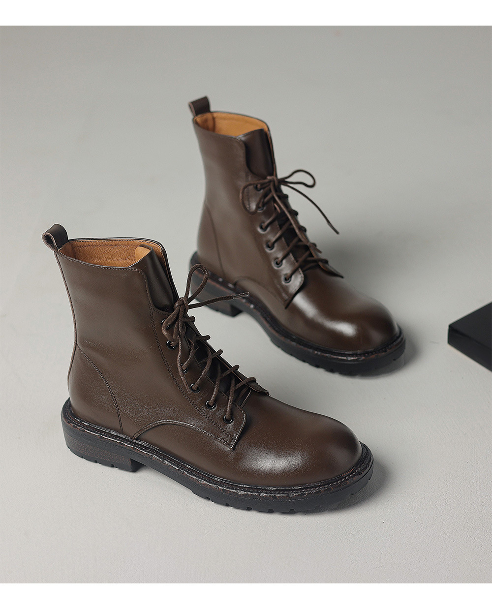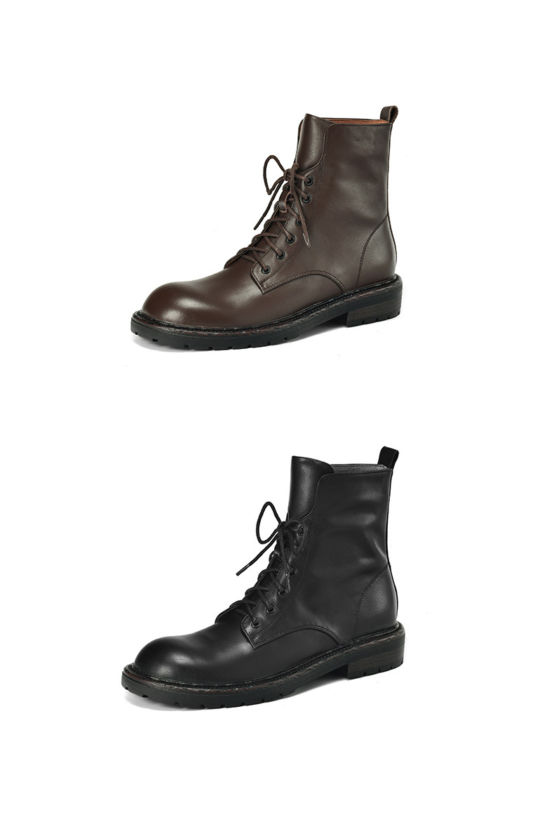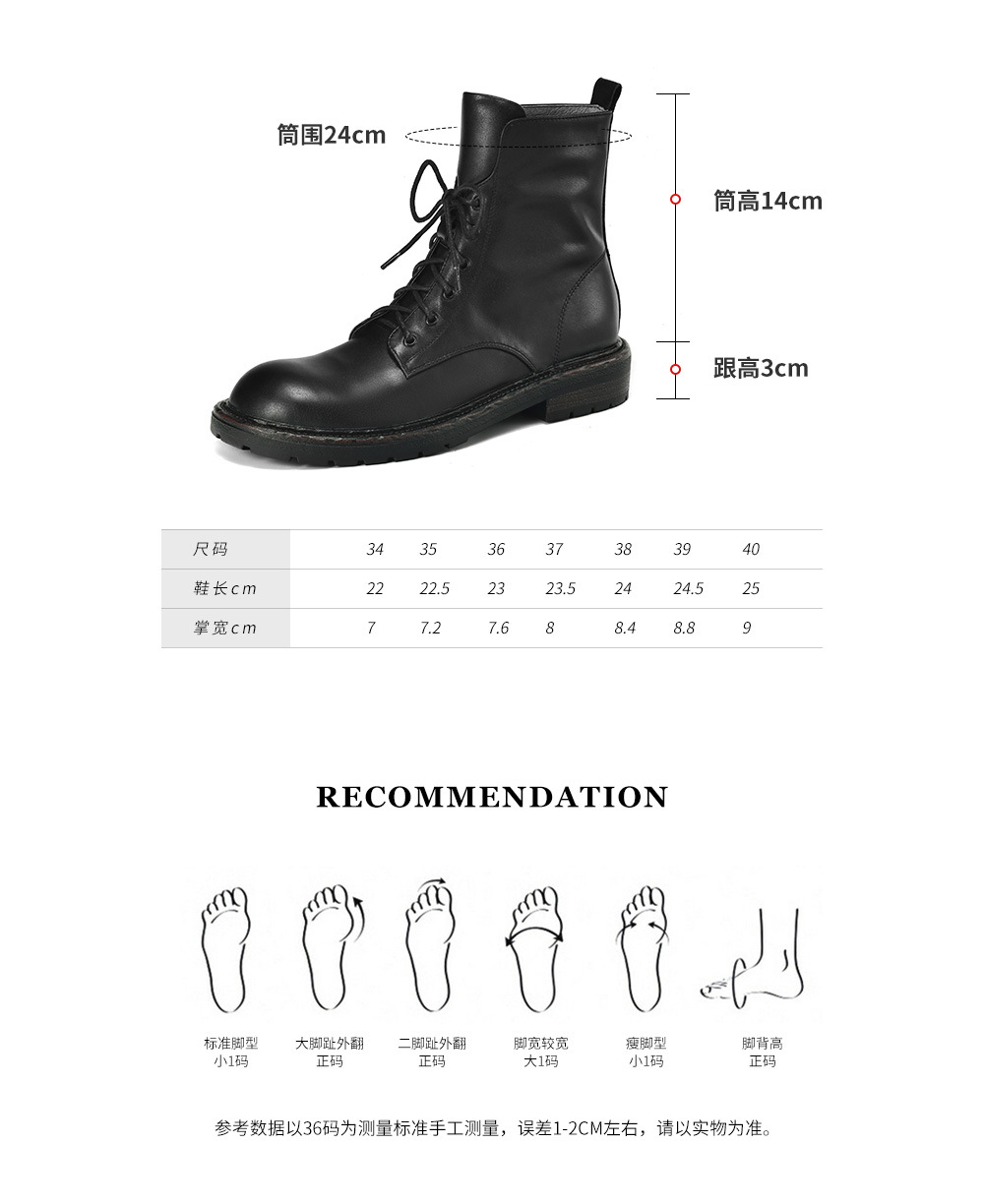 풀 탑 레이어 소 가죽 3cm 전면 레이스 업 마틴 부츠 여성의 2024 봄 가을 겨울 가죽 싱글 부츠 플랫 짧은 부츠 40스토어 가기