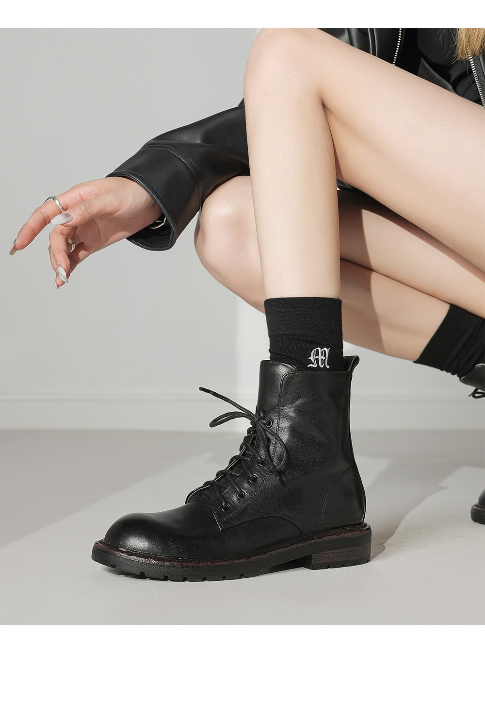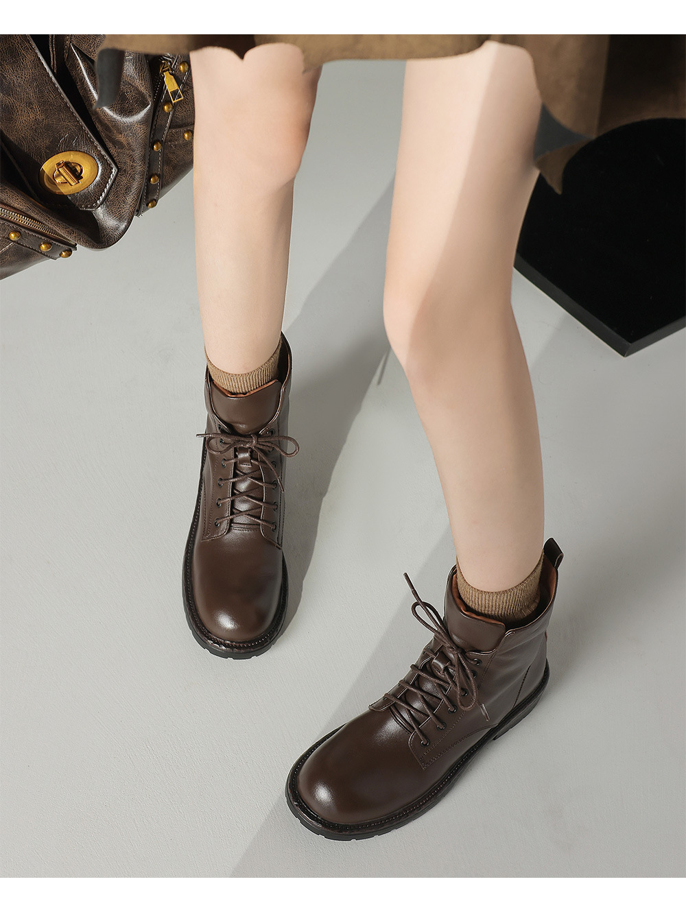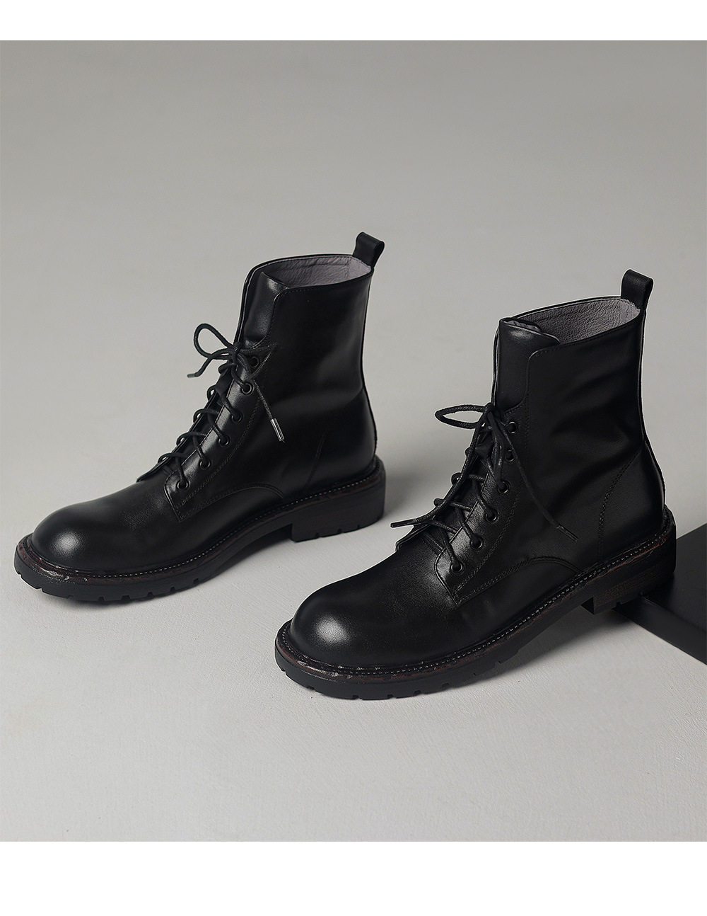 풀 탑 레이어 소 가죽 3cm 전면 레이스 업 마틴 부츠 여성의 2024 봄 가을 겨울 가죽 싱글 부츠 플랫 짧은 부츠 40스토어 가기