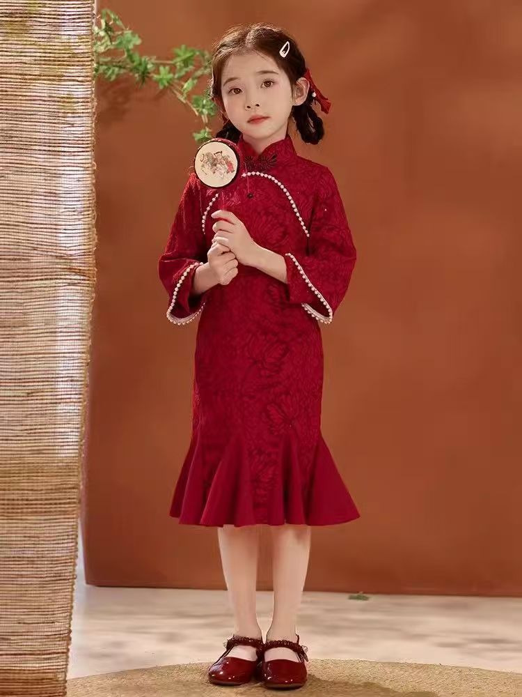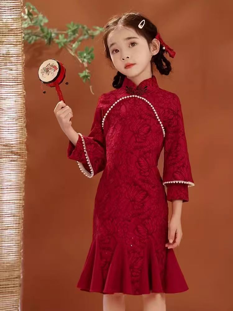 소녀 청삼 2024 새로운 봄과 가을 중국 스타일 어린 소녀 빨간 새로운 중국 스타일 꽃 소녀 원피스 어린이 원피스스토어 가기