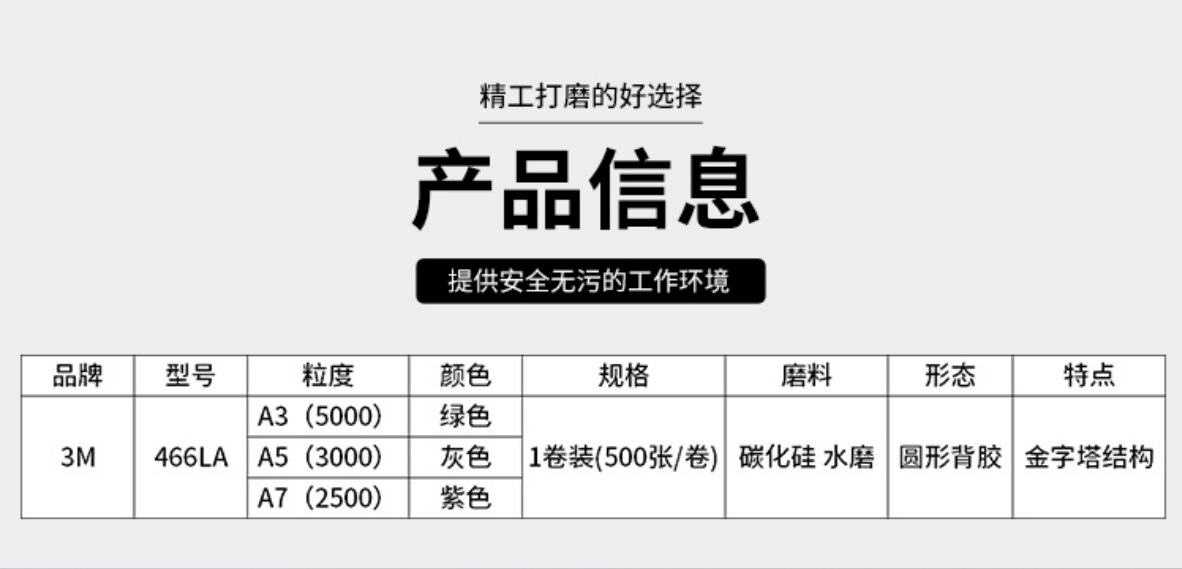 3M 466LA A5/A3/A7 피라미드 모래 디스크 접착 점 샌딩 종이 연삭 연마 판 500 조각/롤