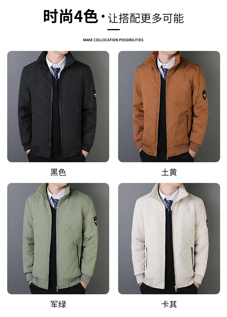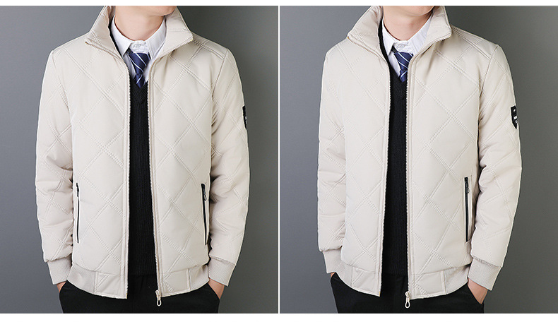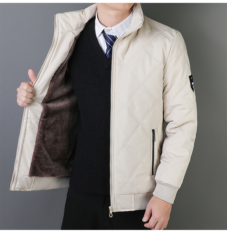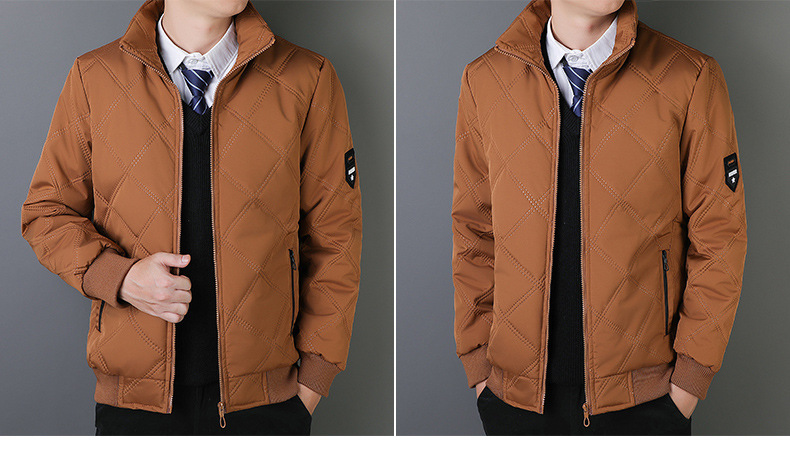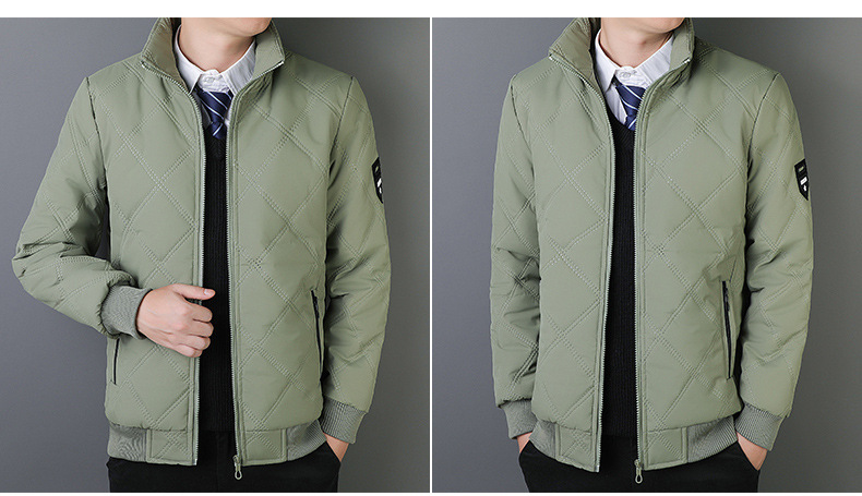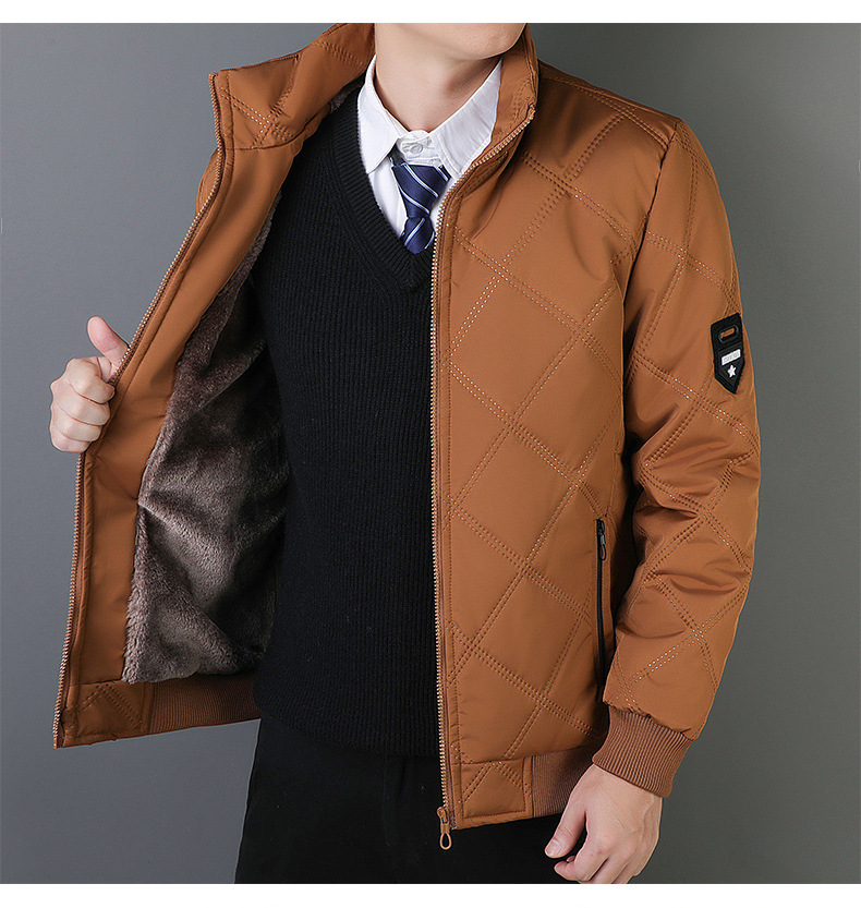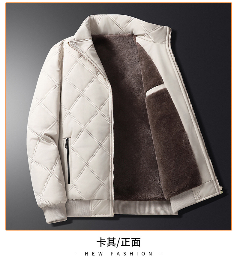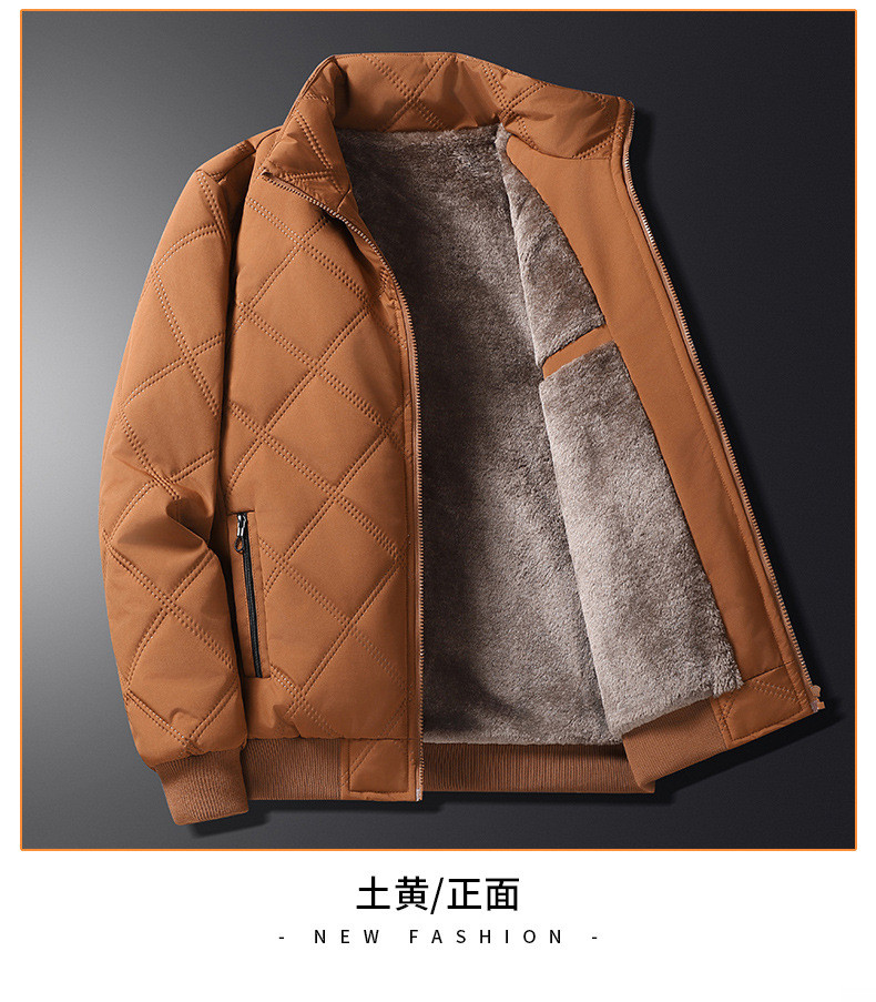 남성용 크로스보더 면 코트 2025 신작 남성용 가을 겨울 스탠드업 칼라 플러스 벨벳 다이아몬드 격자 무늬 따뜻하고 추운 면 코트 배치스토어 가기
