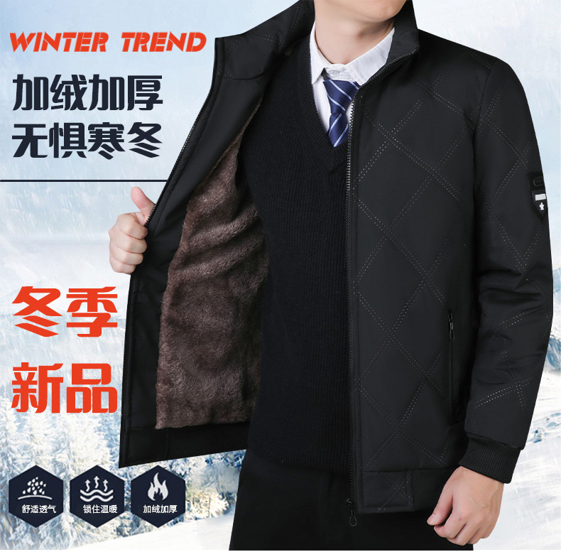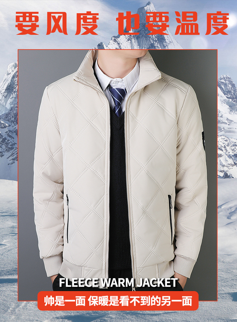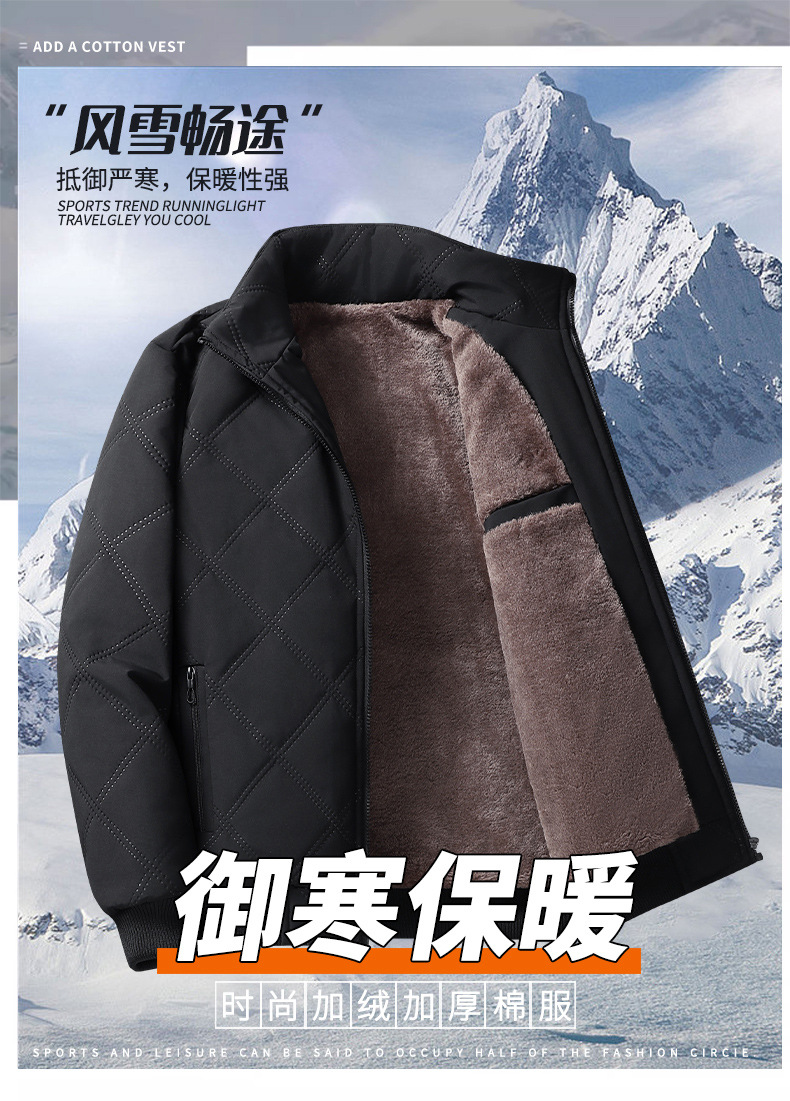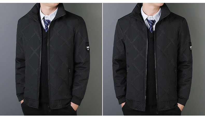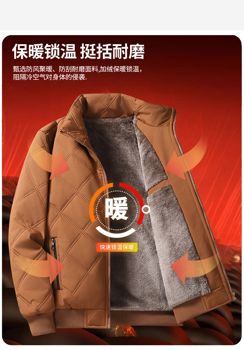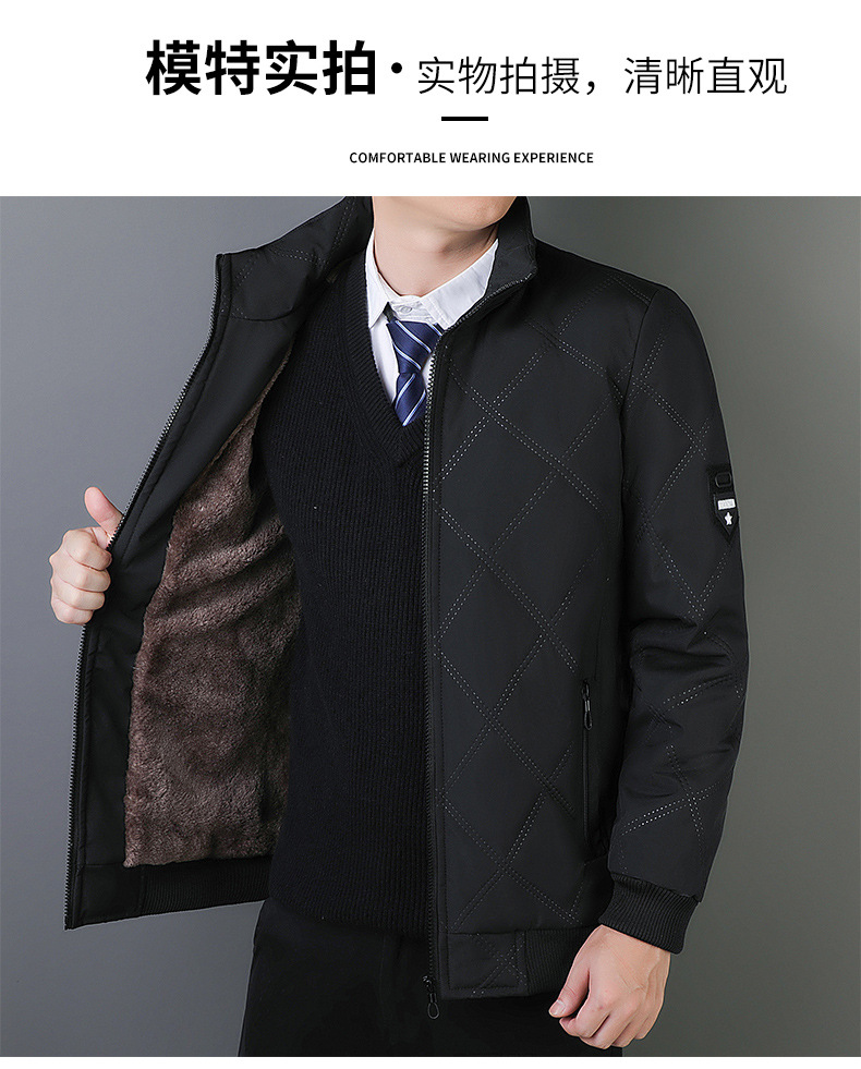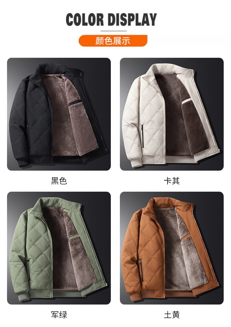 남성용 크로스보더 면 코트 2025 신작 남성용 가을 겨울 스탠드업 칼라 플러스 벨벳 다이아몬드 격자 무늬 따뜻하고 추운 면 코트 배치스토어 가기