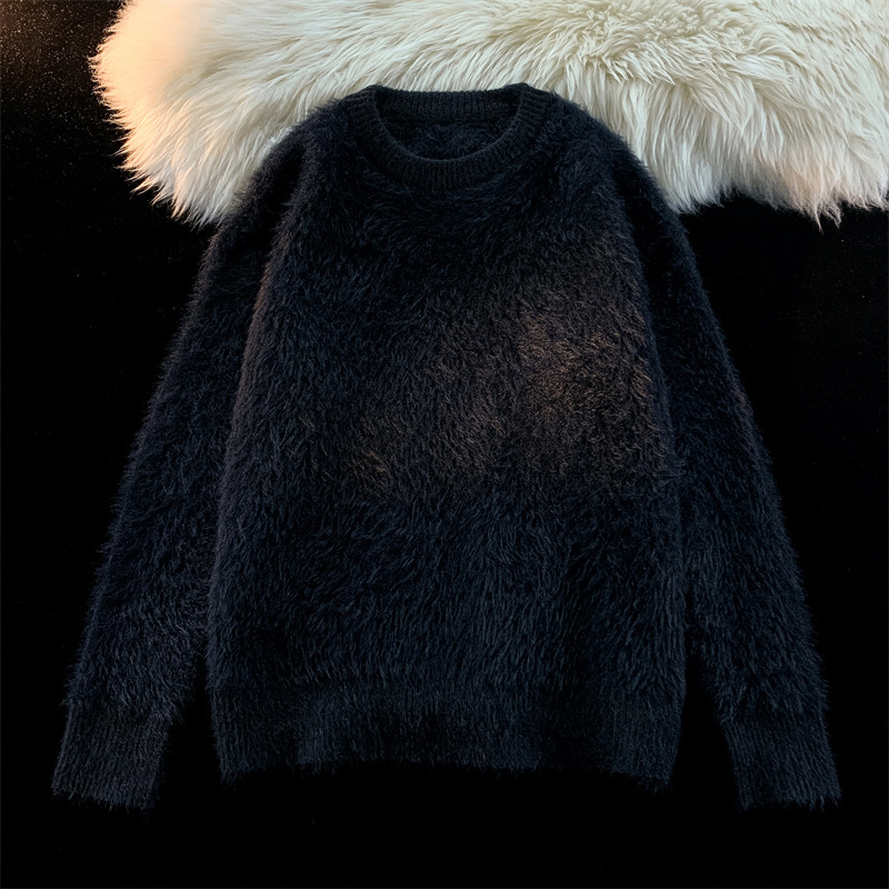 일본 레트로 게으른 스타일 크루 넥 스웨터 소년 겨울 새로운 느슨한 올 매치 솔리드 컬러 스웨터 트렌디 브랜드 탑