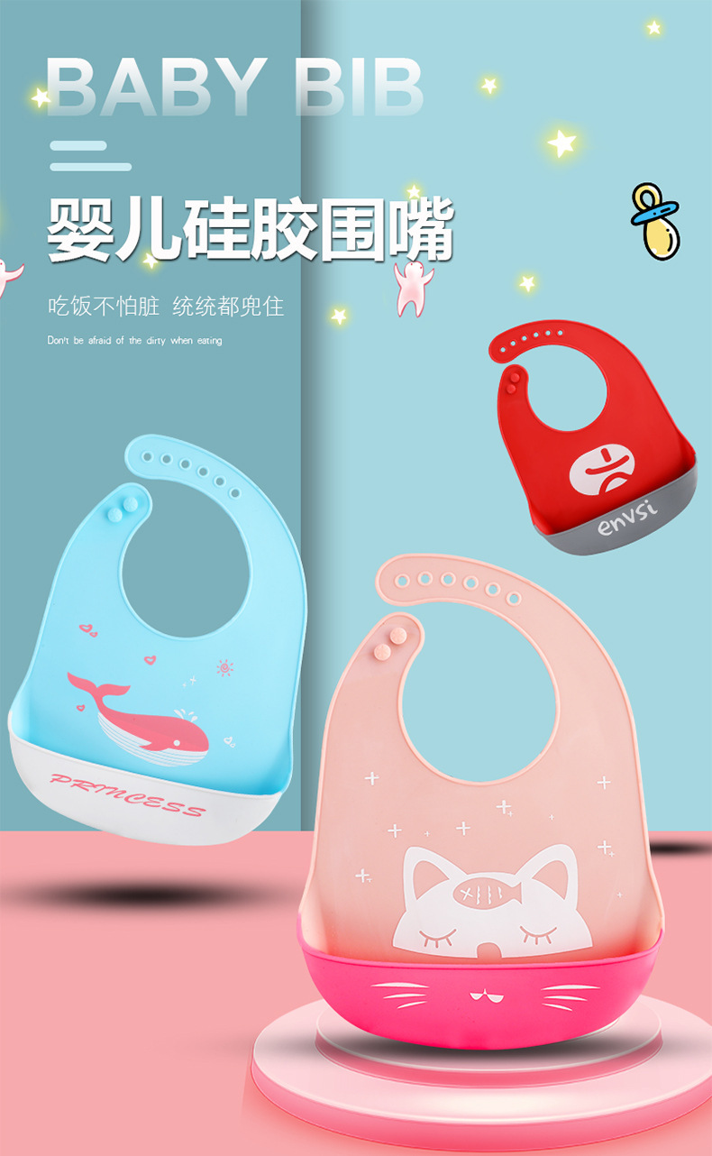 새로운 만화 아기 실리콘 턱받이 방수 아기 식사 포켓 어린이 턱받이 큰 슬립 포켓 워시없는 음식 포켓스토어 가기