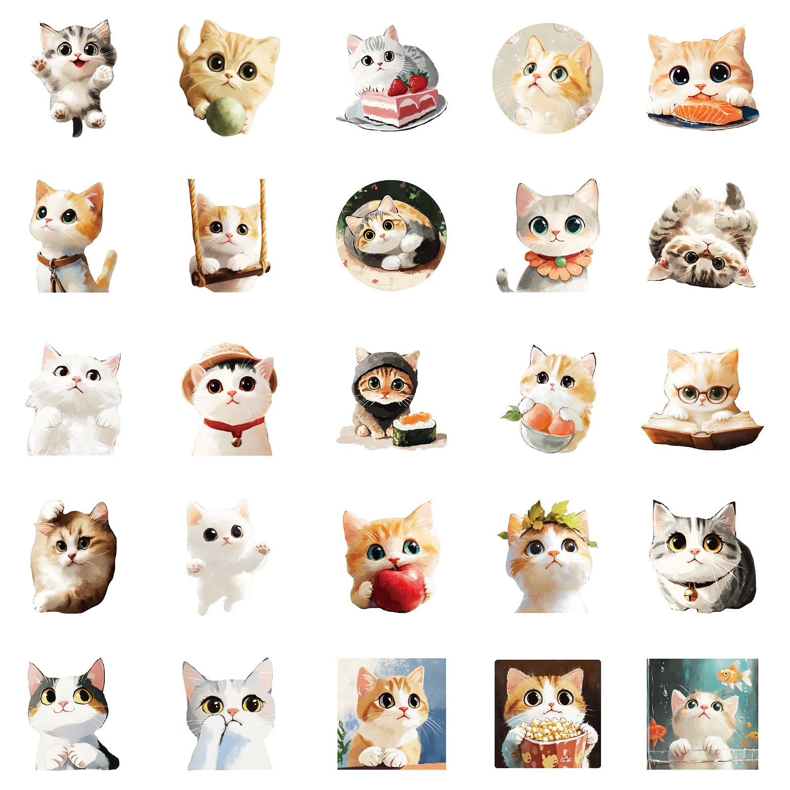 50개의 유화 둥근 얼굴 고양이 스티커 아마존 크로스보더 장식용 휴대폰 케이스 스케이트보드 노트북 스티커스토어 가기