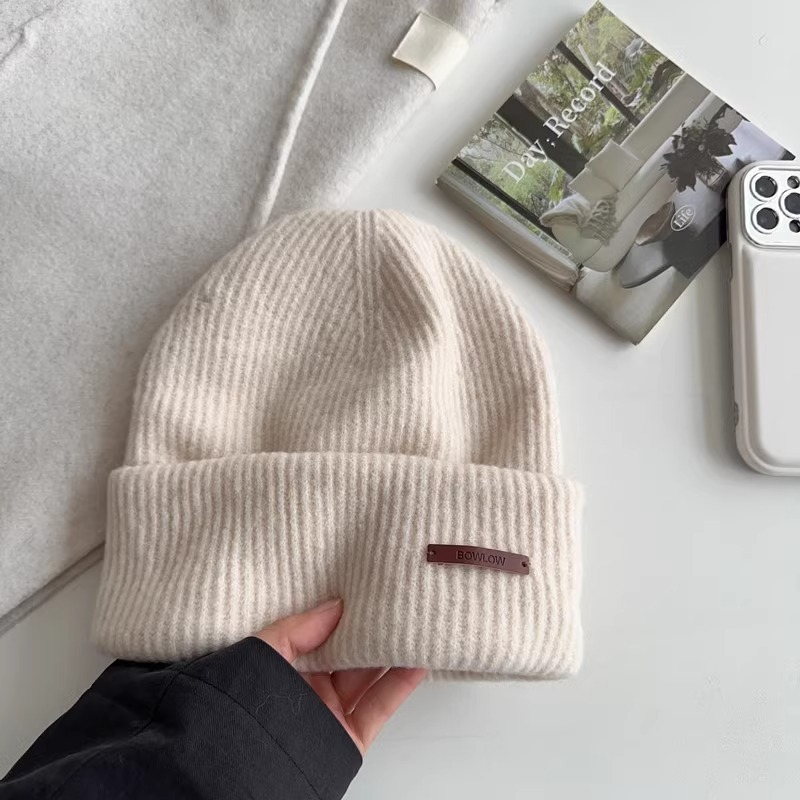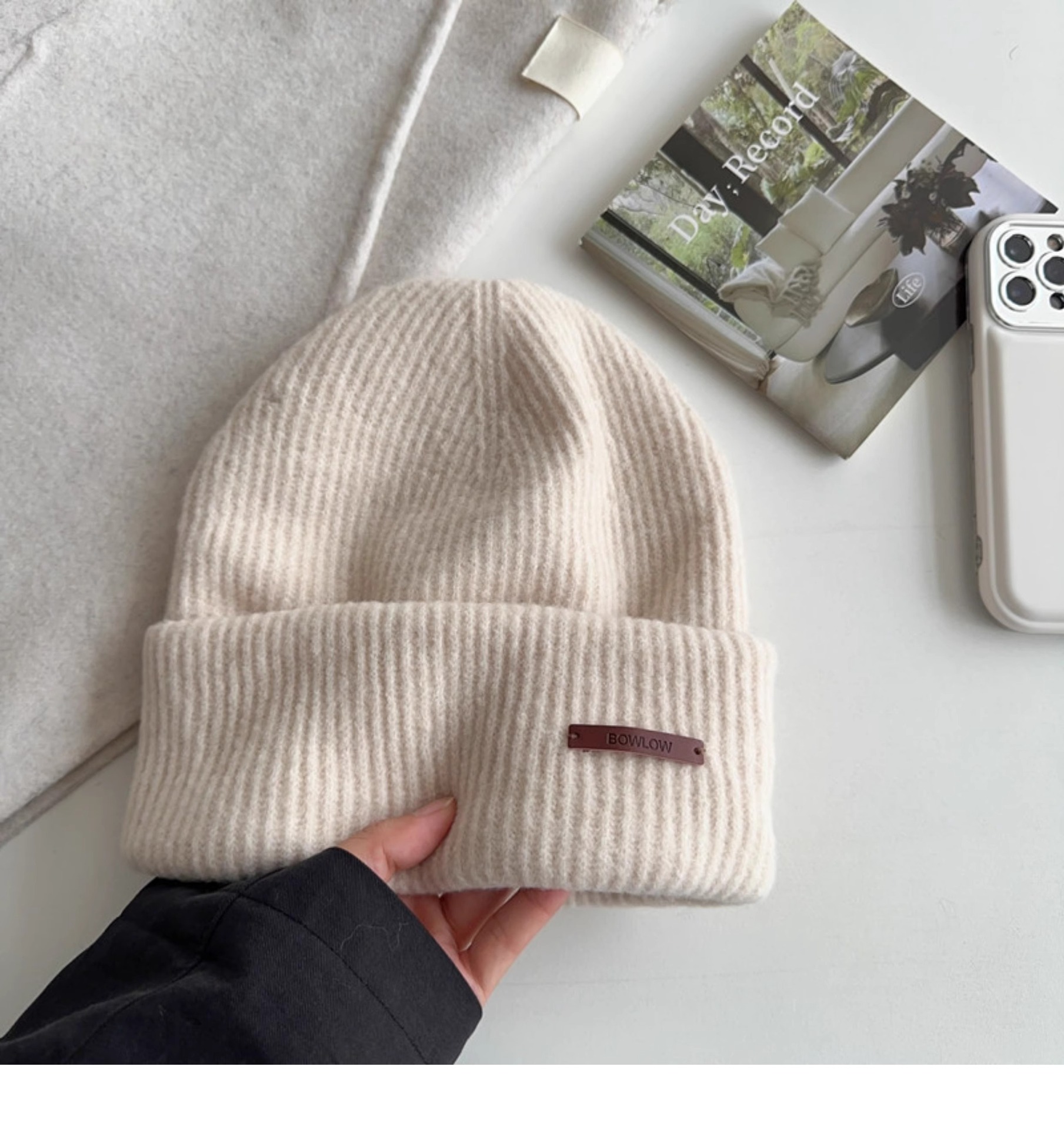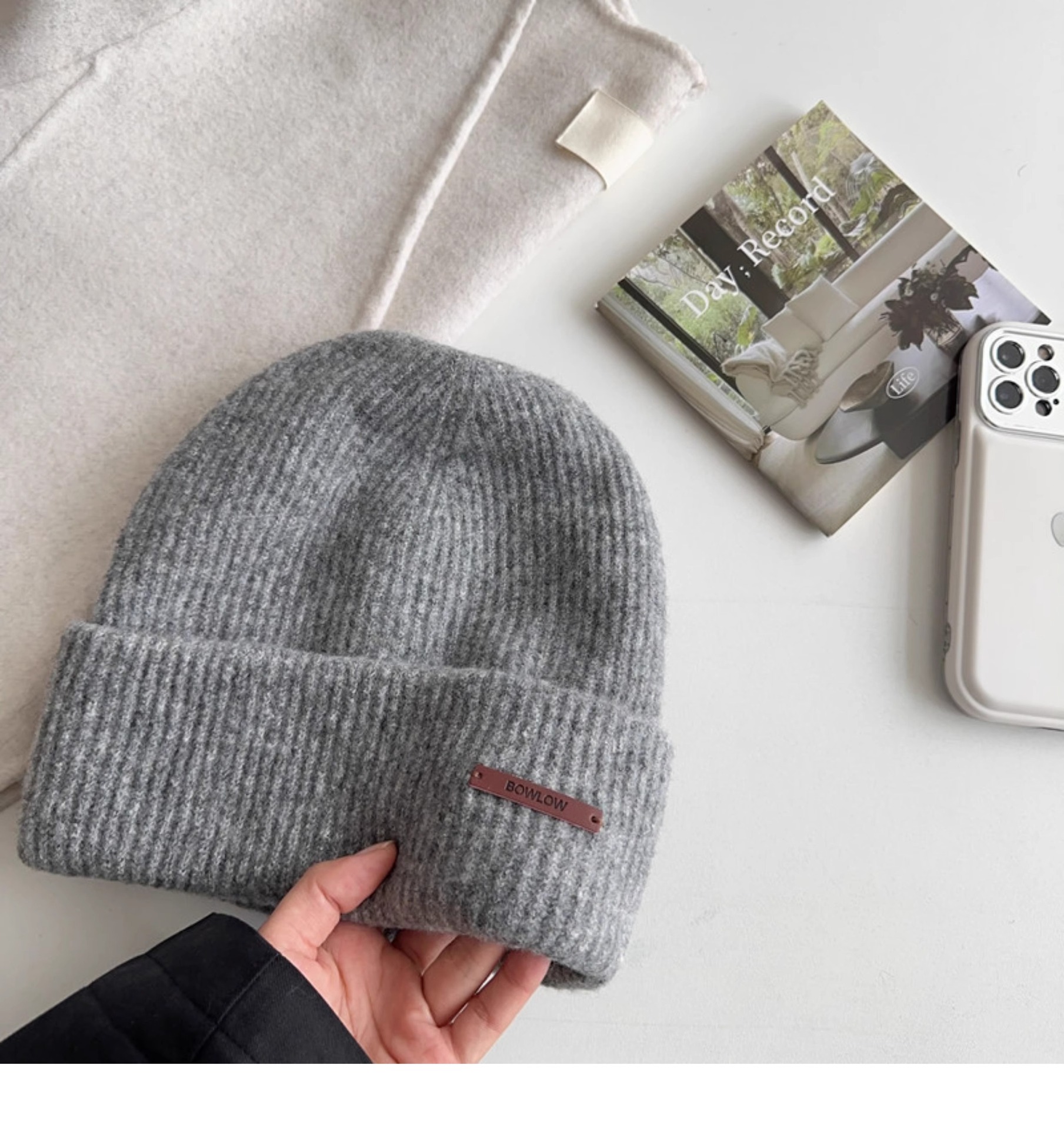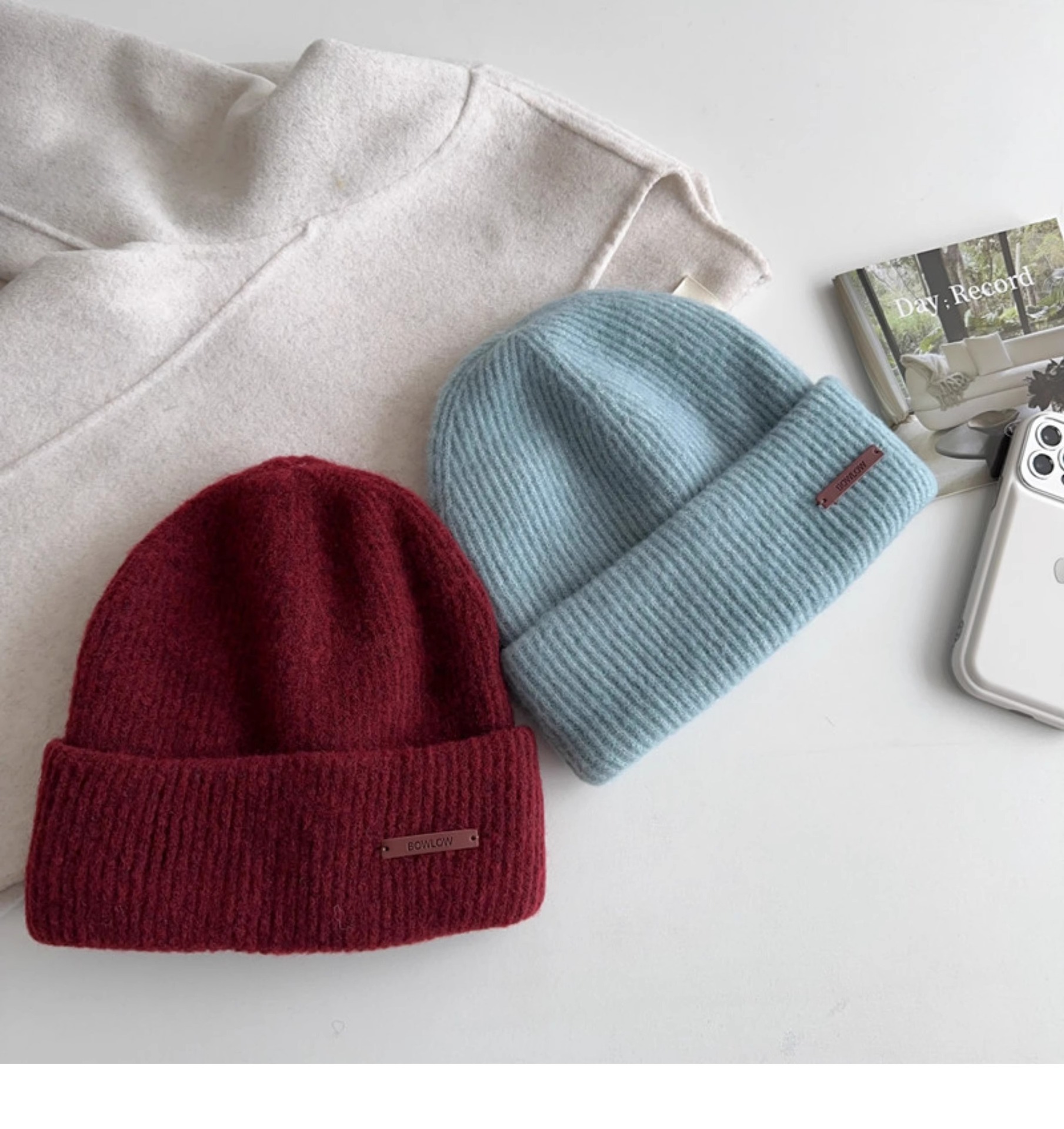 솔리드 컬러 니트 모자 어린이 라벨링 기본 얼굴 작은 올 매치 유니섹스 커플의 울 모자 추운 모자 겨울
