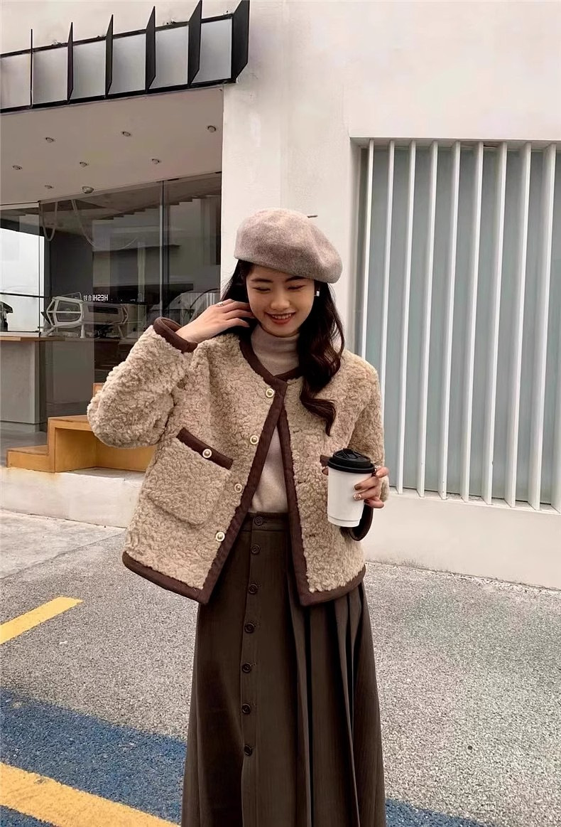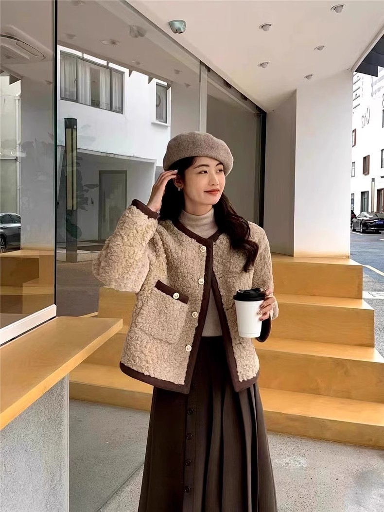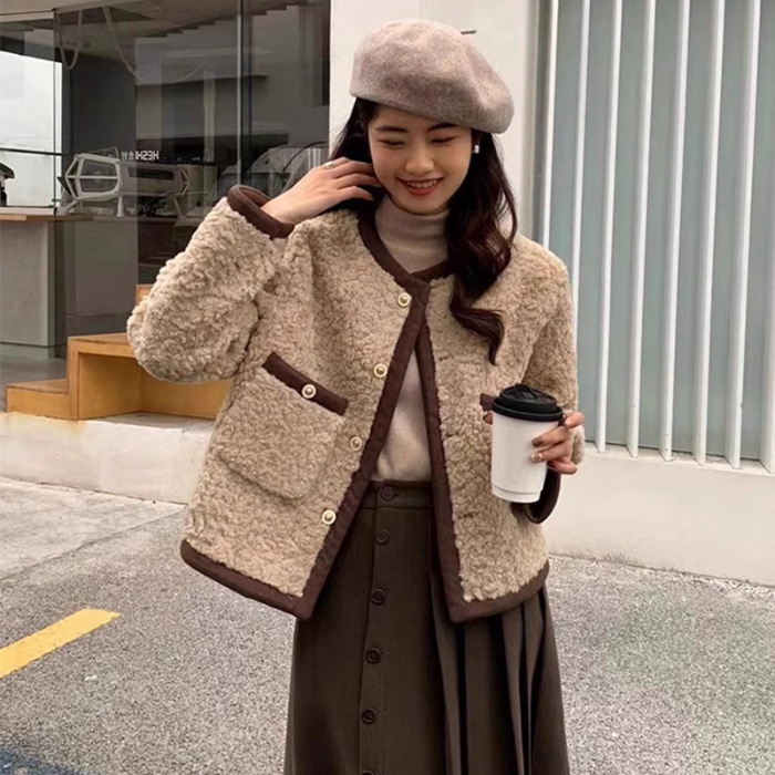 새로운 양고기 양모 코트 여성의 봄 가을과 겨울 2024 새로운 폭발 작은 스타일 독특한 슈퍼 좋은 탑스토어 가기