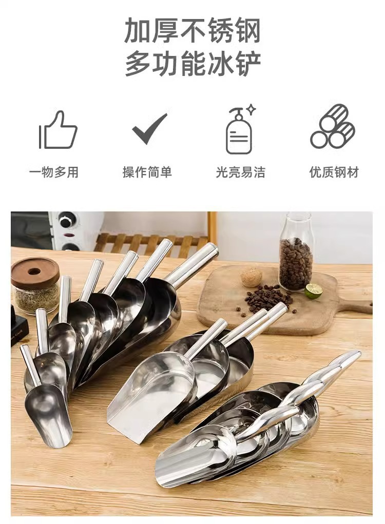 아이스 삽 스테인레스 스틸 두껍게 한 조각 쌀 삽 밀가루 음식 차 라운드 삽 밀크 티 샵 아이스 메이커 유니버설