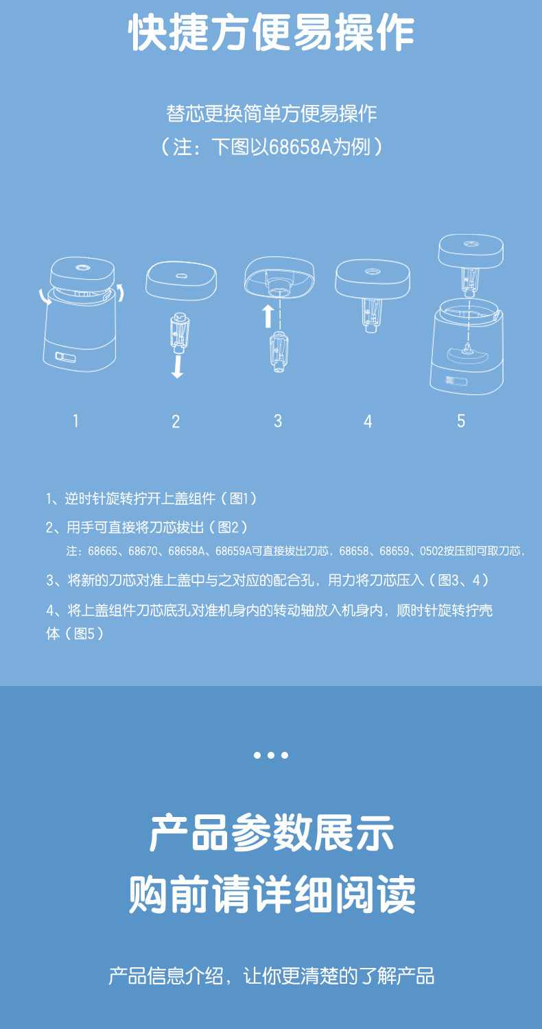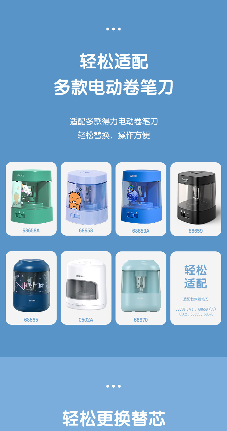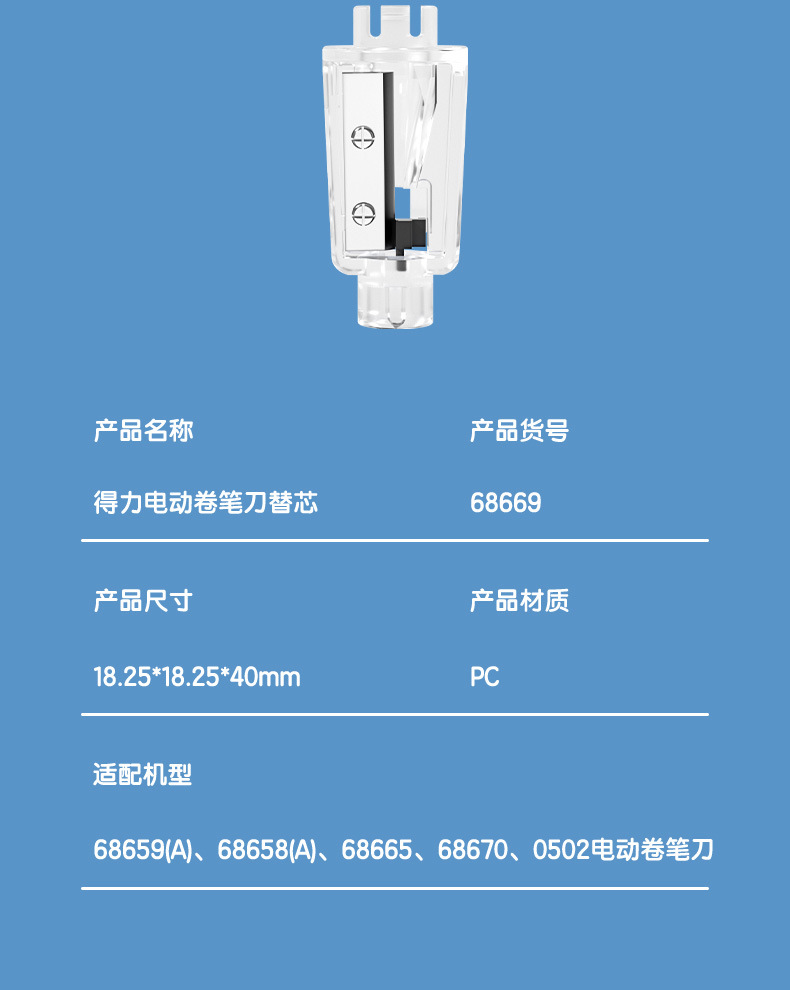 델리 전기 연필깎이 교체 가능한 칼심 68670/68659/68658A/VA3/VA6 연필깎이 칼