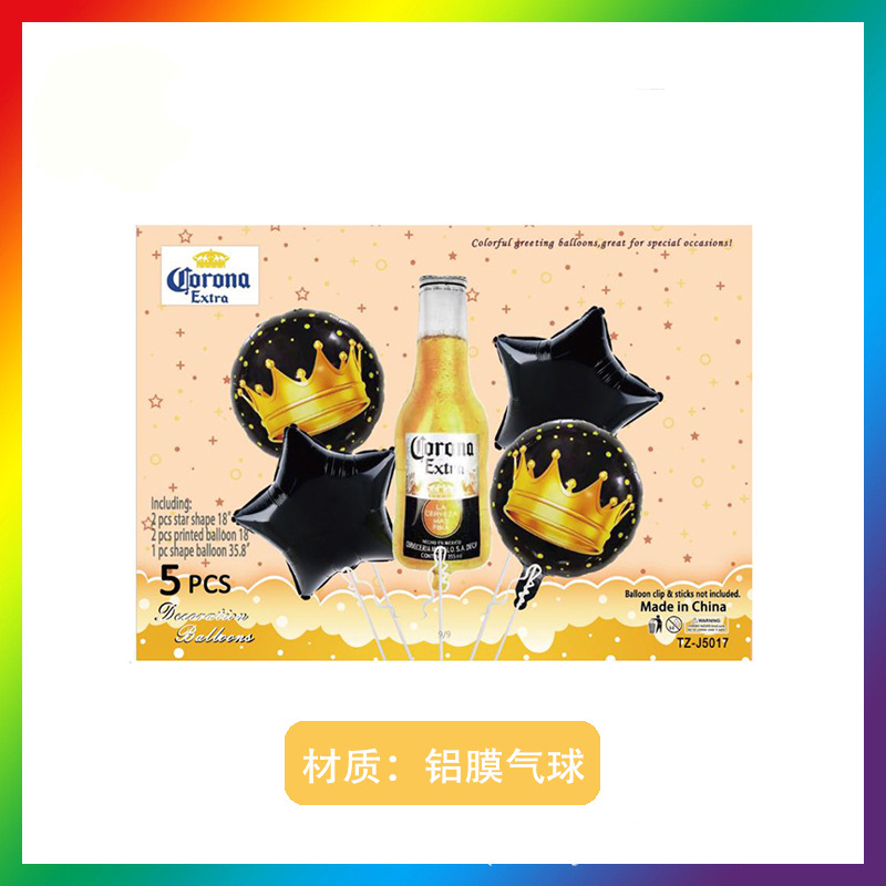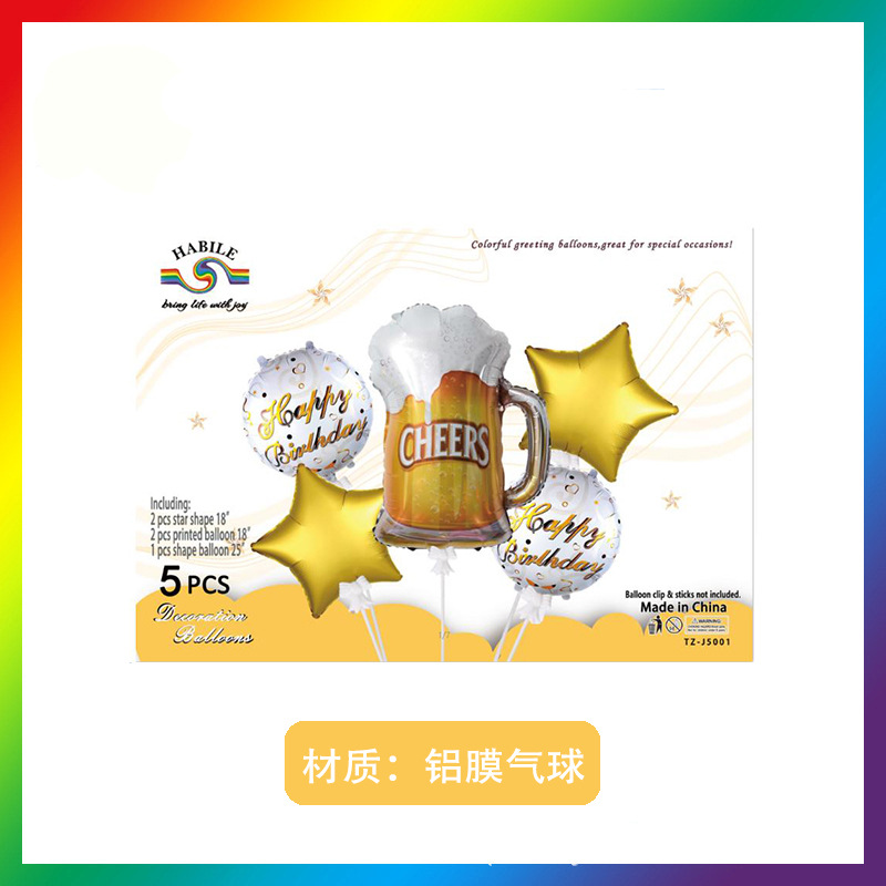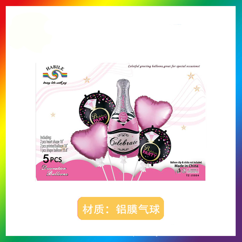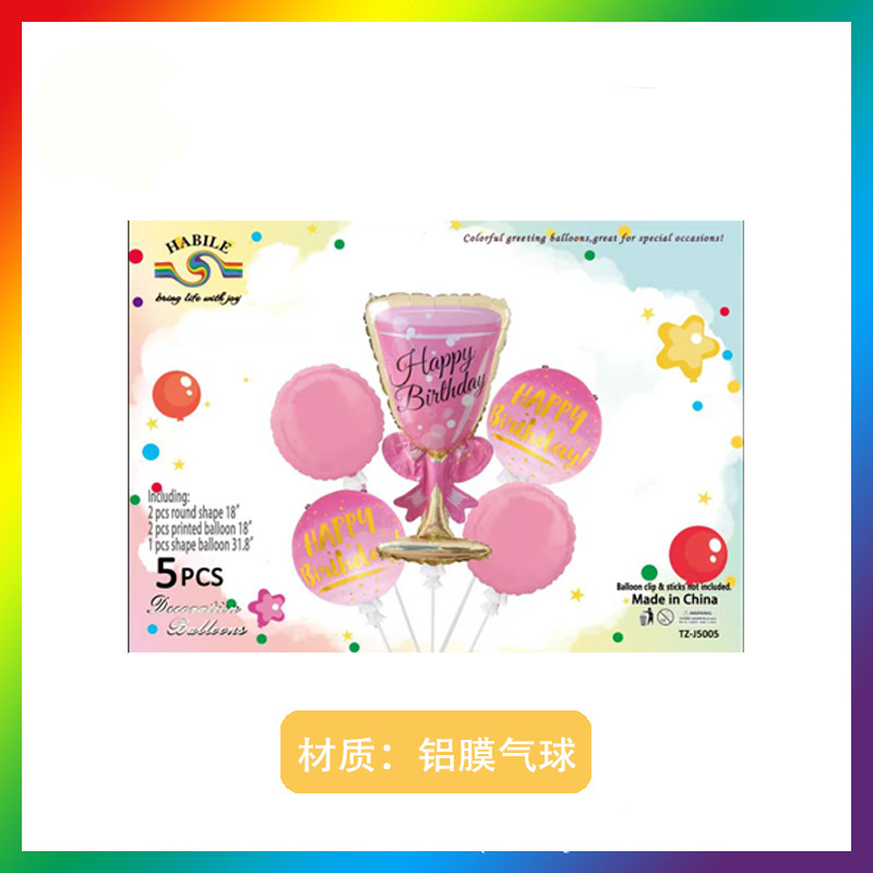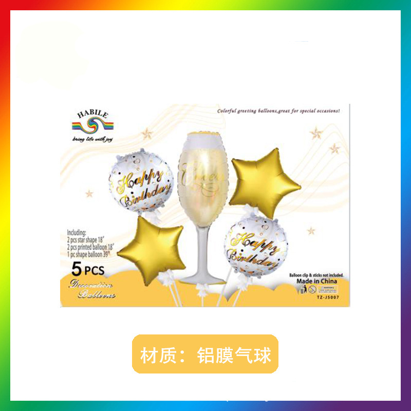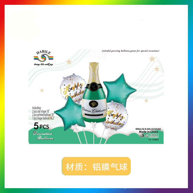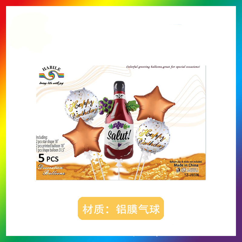국경 새 와인 유리 와인 병 5 조각 알루미늄 필름 풍선 생일 파티 분위기 장식 종이 카드