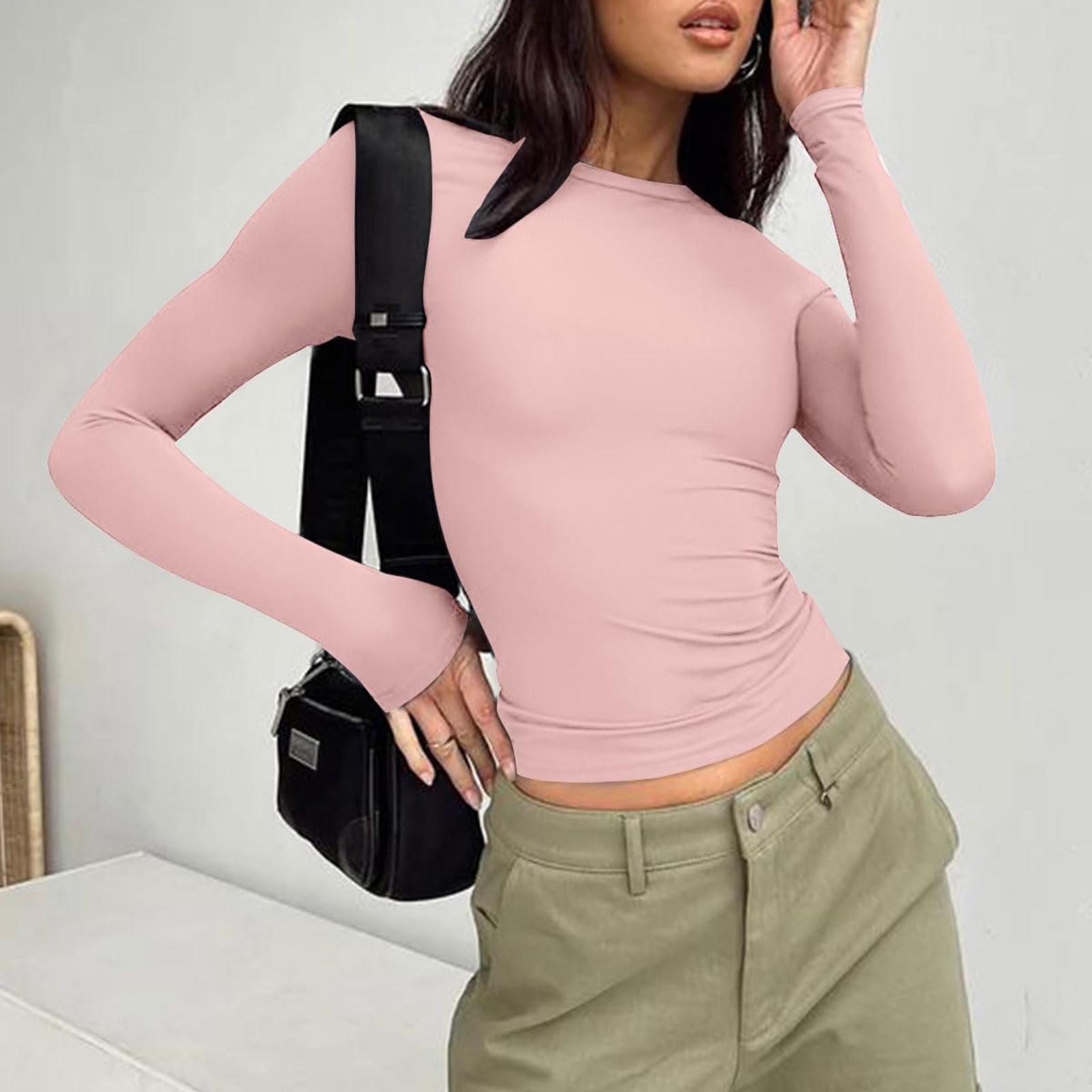 유럽과 미국의 인기있는 여성 캐주얼 긴팔 티셔츠 봄과 가을 단색 슬림 핏 풀오버 티셔츠 여성용 스트리트 베이스 셔츠 탑스토어 가기
