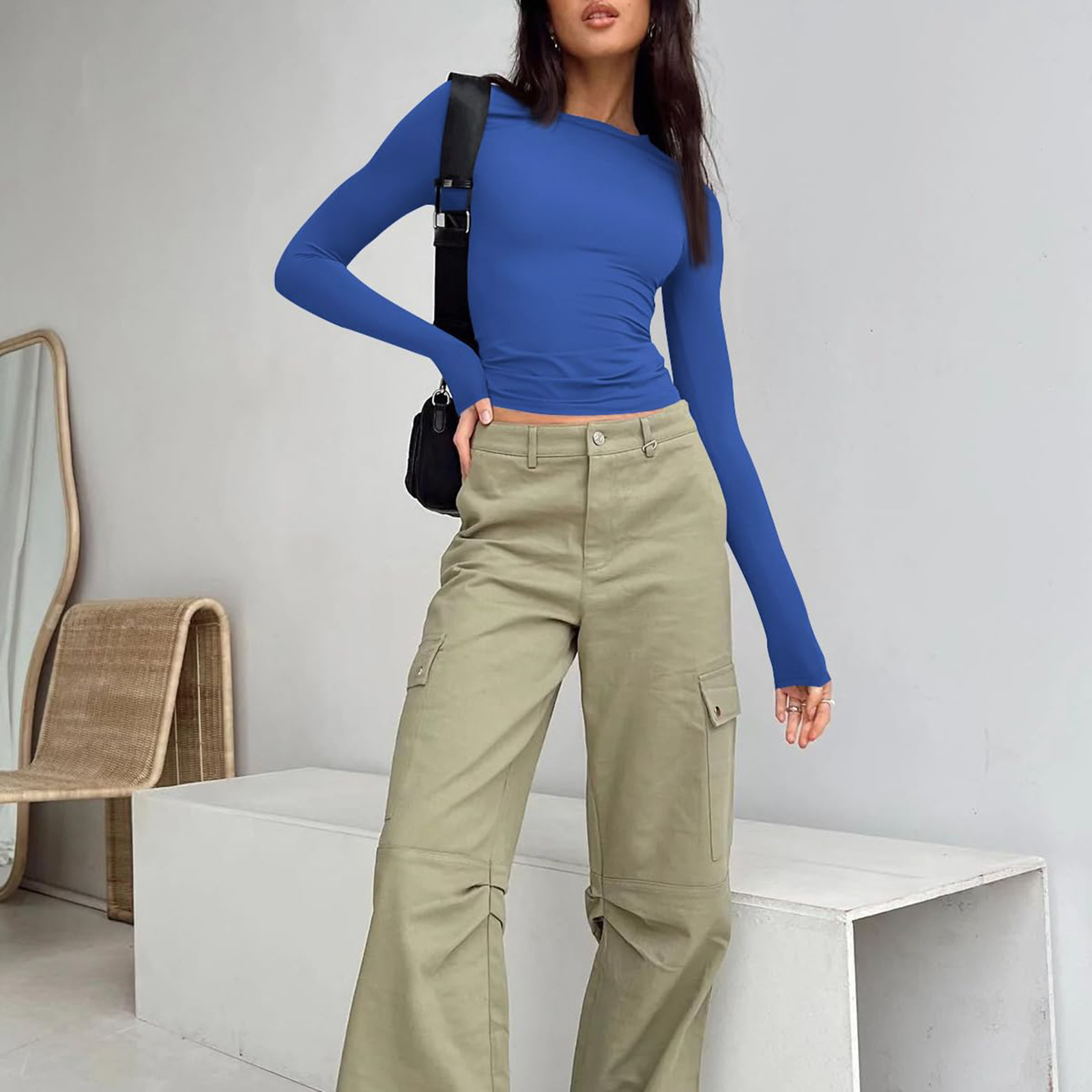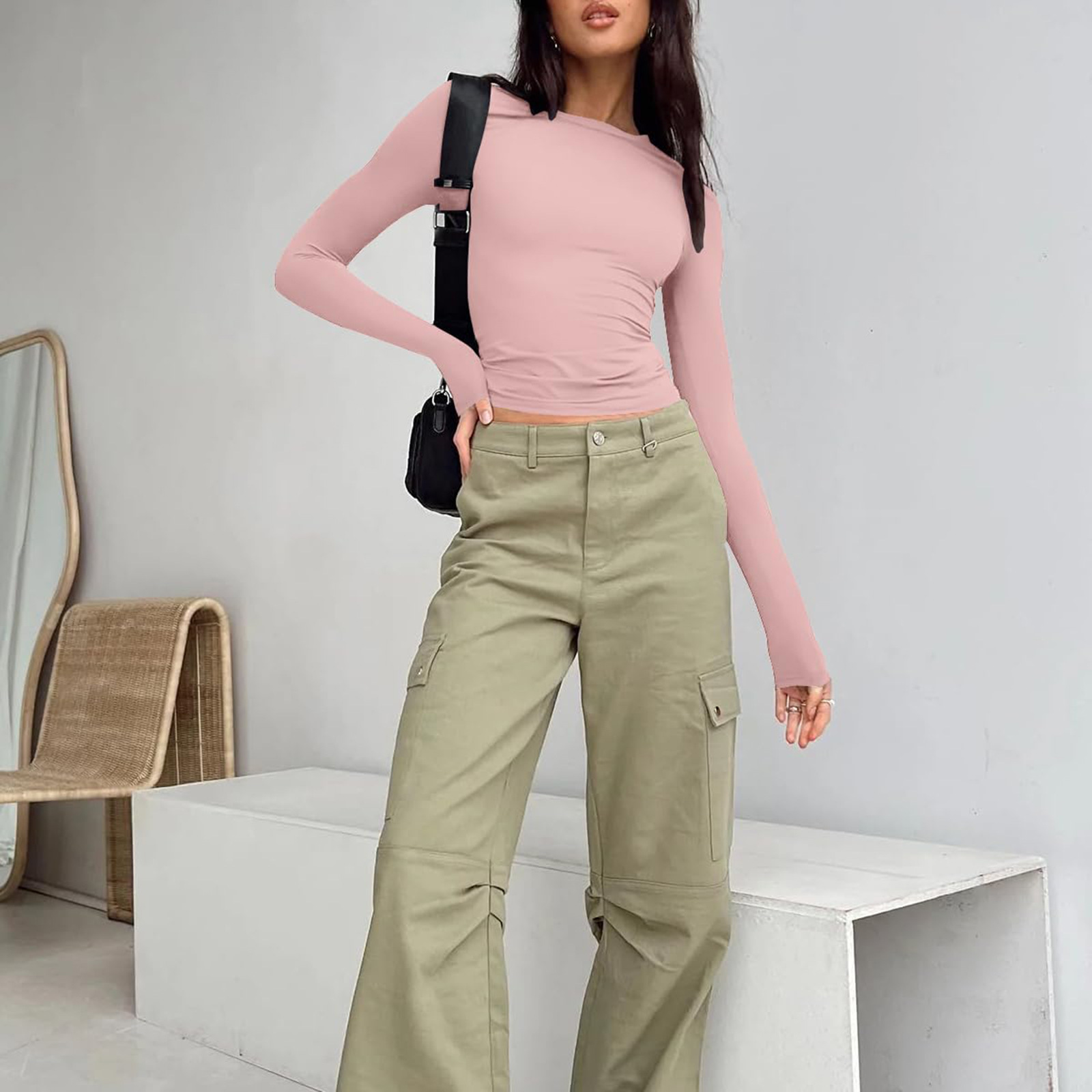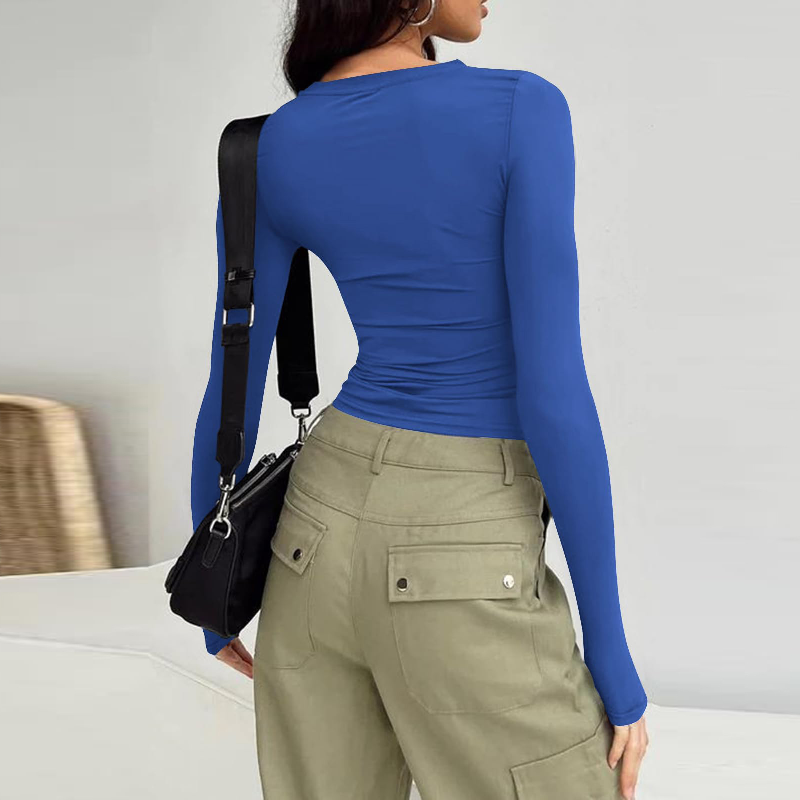 유럽과 미국의 인기있는 여성 캐주얼 긴팔 티셔츠 봄과 가을 단색 슬림 핏 풀오버 티셔츠 여성용 스트리트 베이스 셔츠 탑