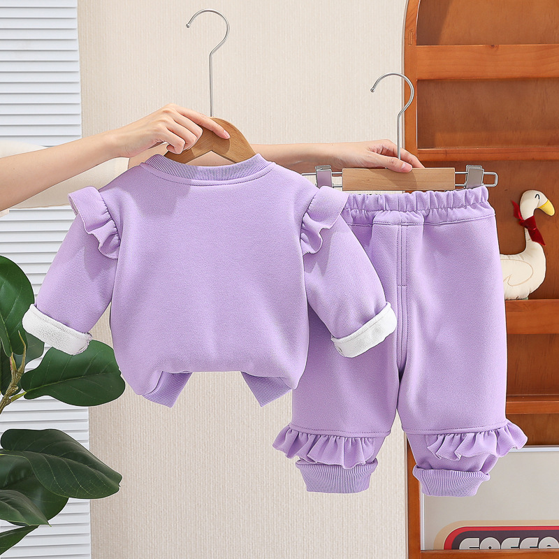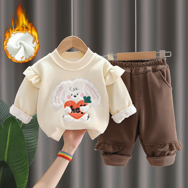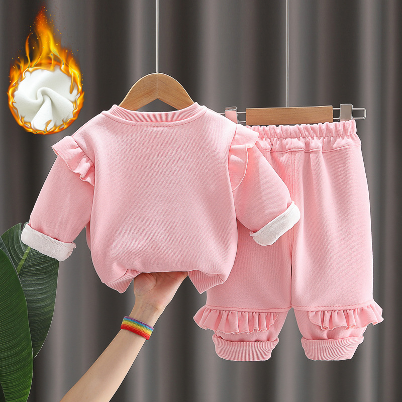 어린이 세트 가을 겨울 의류 소녀의 기모 스웨트 바지 투피스 세트 소녀의 아기의 서양식 만화 의류 트렌디