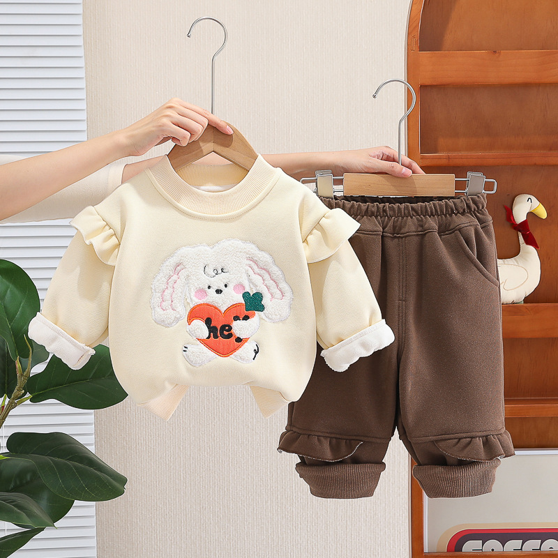 어린이 세트 가을 겨울 의류 소녀의 기모 스웨트 바지 투피스 세트 소녀의 아기의 서양식 만화 의류 트렌디스토어 가기