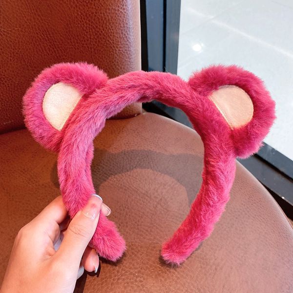 2022 년 새로운 딸기 곰 봉제 헤어 후프 가을과 겨울 여성의 워시 페이스 번들 헤어 후프 귀여운 프레스 헤어 미끄럼 헤어 핀 헤드웨어
