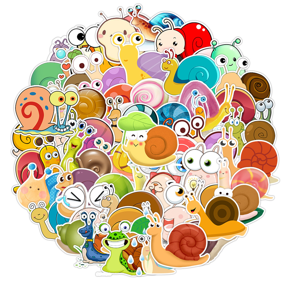 50 새로운 만화 달팽이 귀여운 동물 학습 어린이 스티커 방수 휴대 전화 카드 스케이트 보드 자동차 장식 스티커