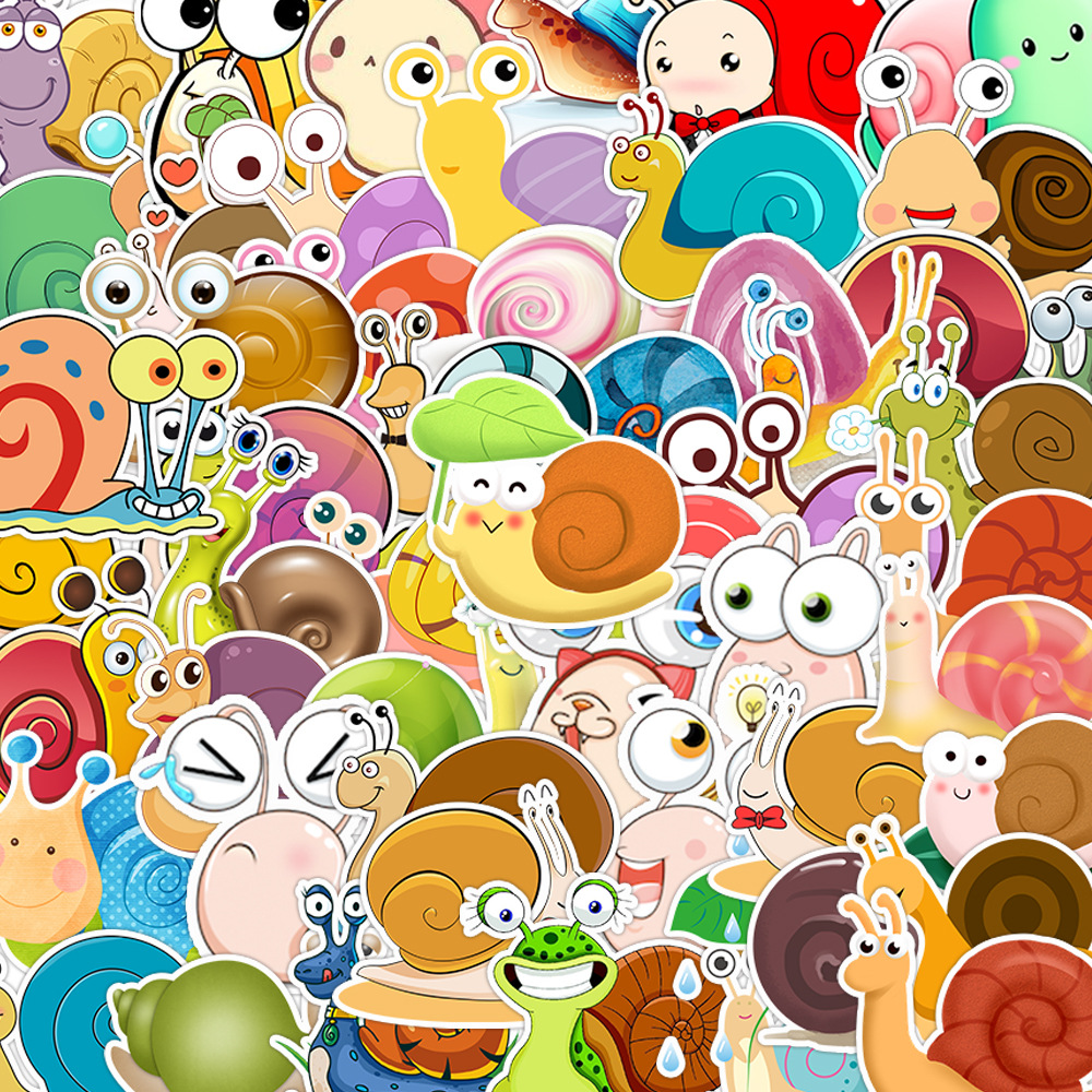 50 새로운 만화 달팽이 귀여운 동물 학습 어린이 스티커 방수 휴대 전화 카드 스케이트 보드 자동차 장식 스티커스토어 가기