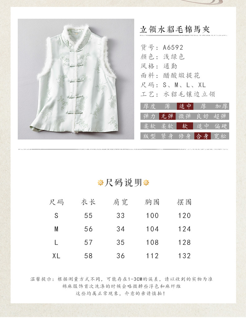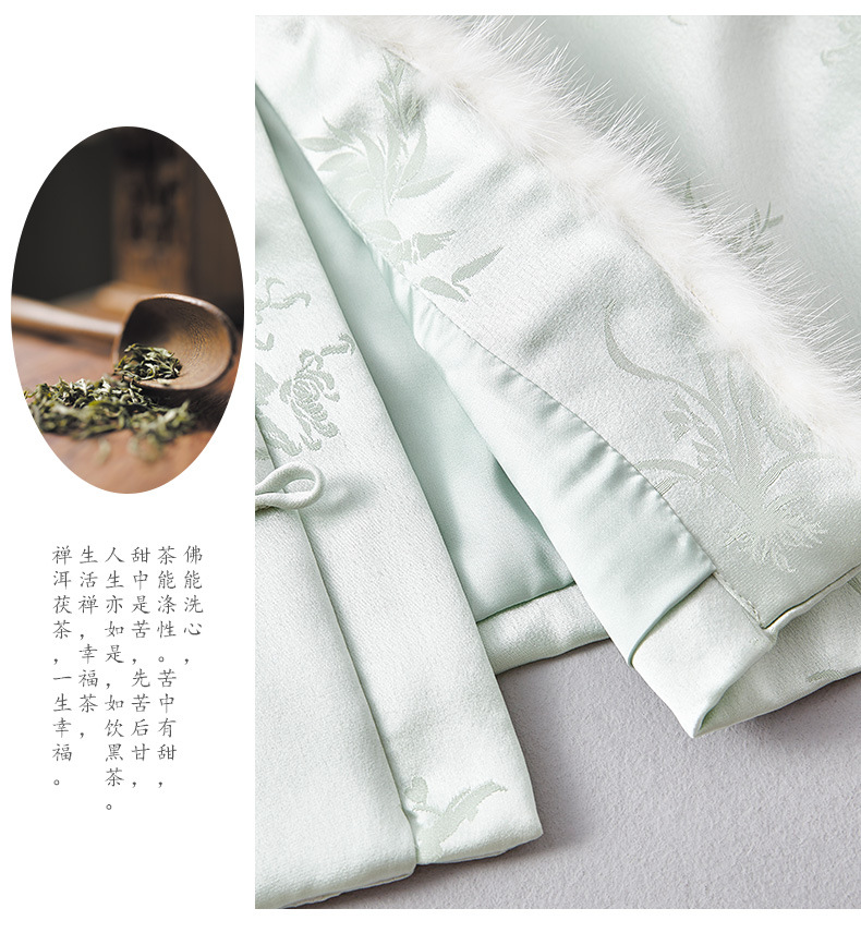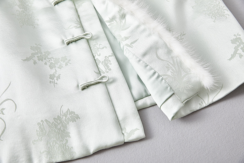 새로운 중국 스타일의 하이 엔드 티 의류 우아한 칼라 밍크 헤어 코튼 조끼 Acetic Acid Satin Jacquard Hanfu 조끼 여성 버클스토어 가기