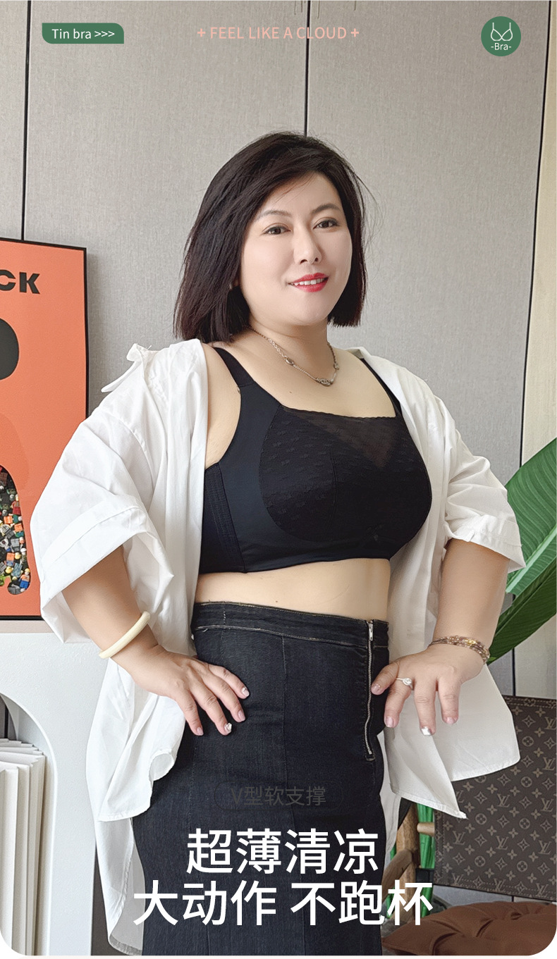 통통녀 플러스 사이즈 속옷 여성 200kg 브래지어 여름 얇은 대형 가슴 작은 처짐 안심 편안한 무림 브라